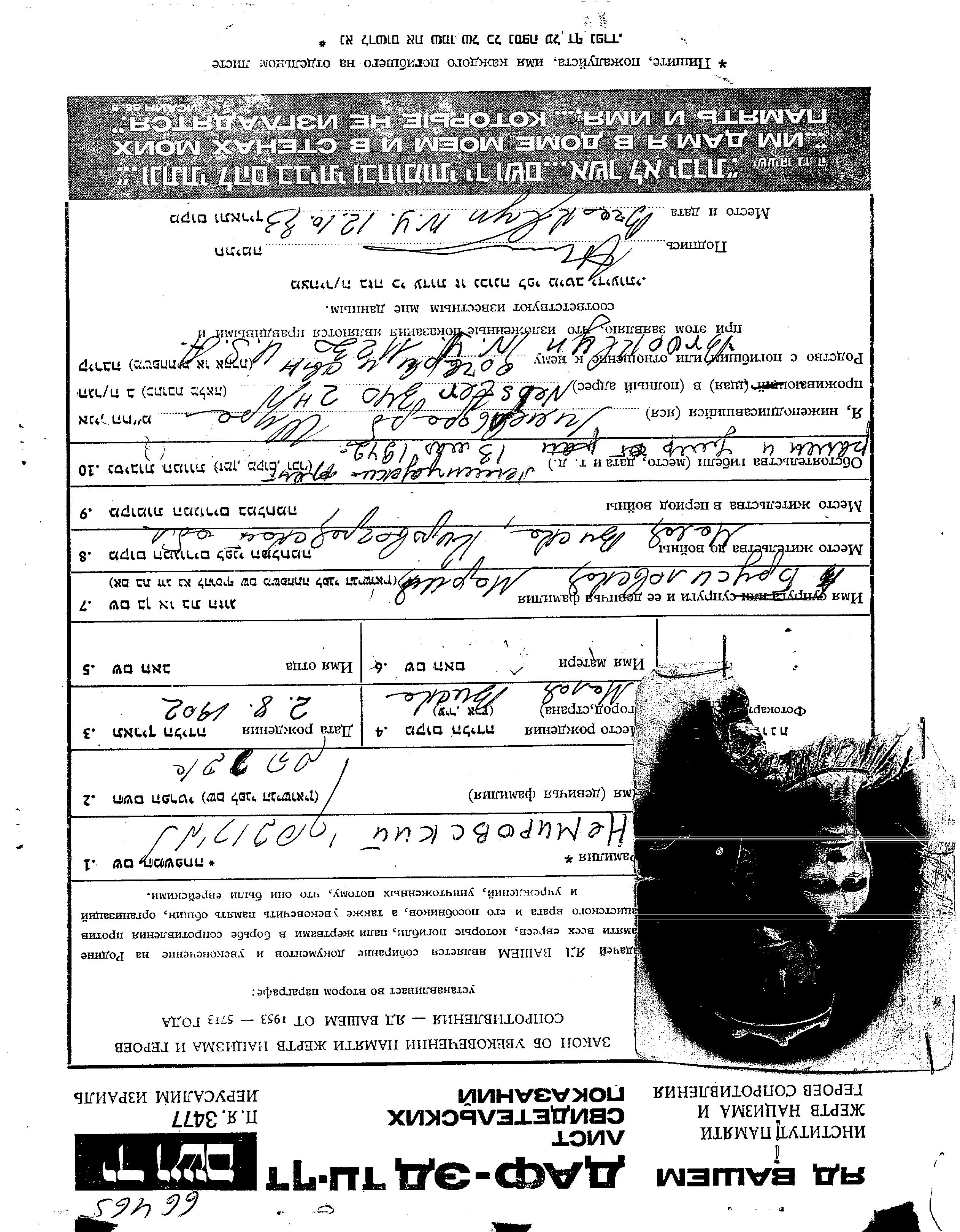 | Nemirovski | Abraham | 1902 | Malaya Viska, Ukraine (USSR) | Photos |