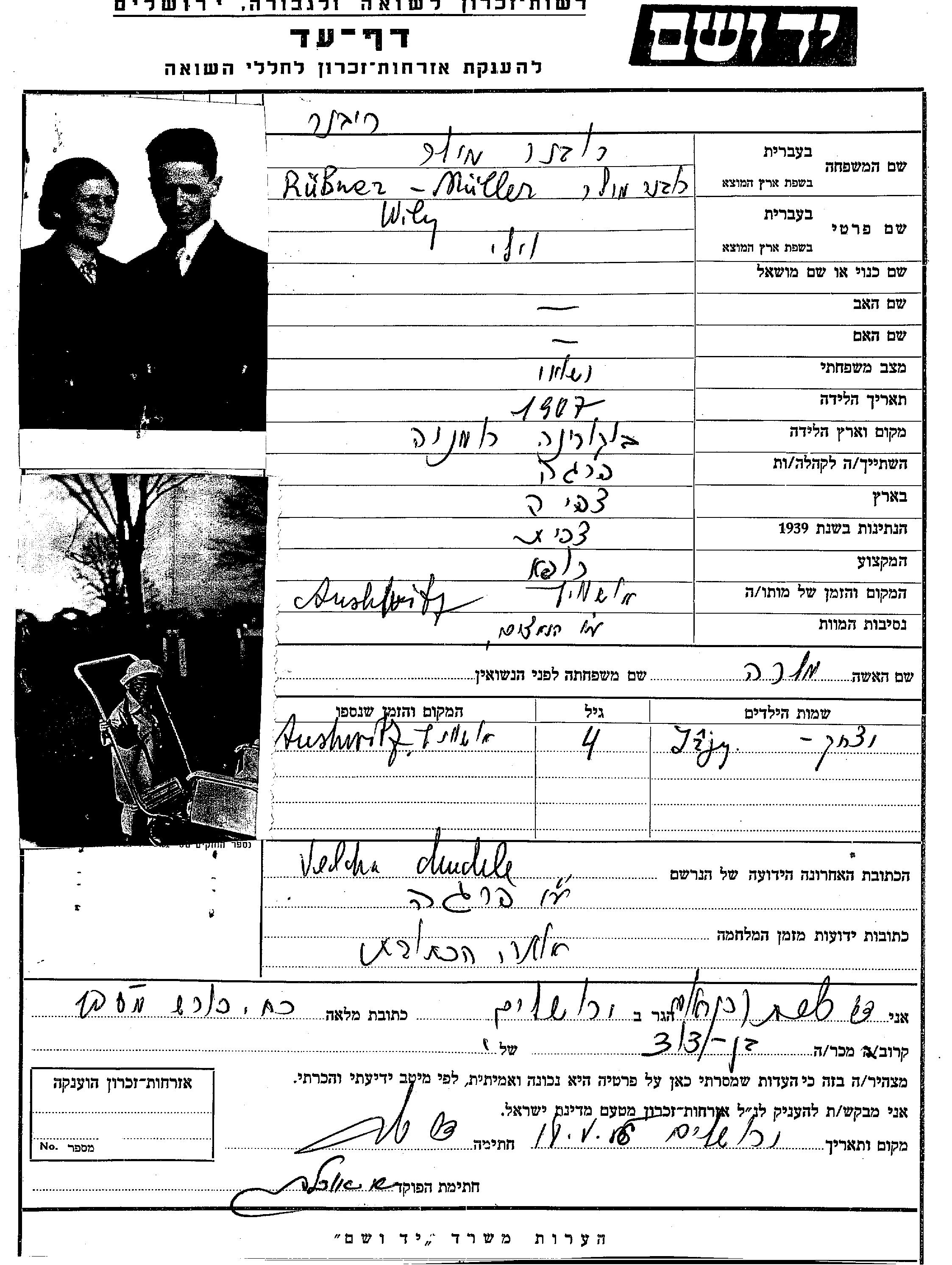 Muller Rubner | Wily | 1907 | Velka Chuchle, Czechoslovakia | Page of Testimony |