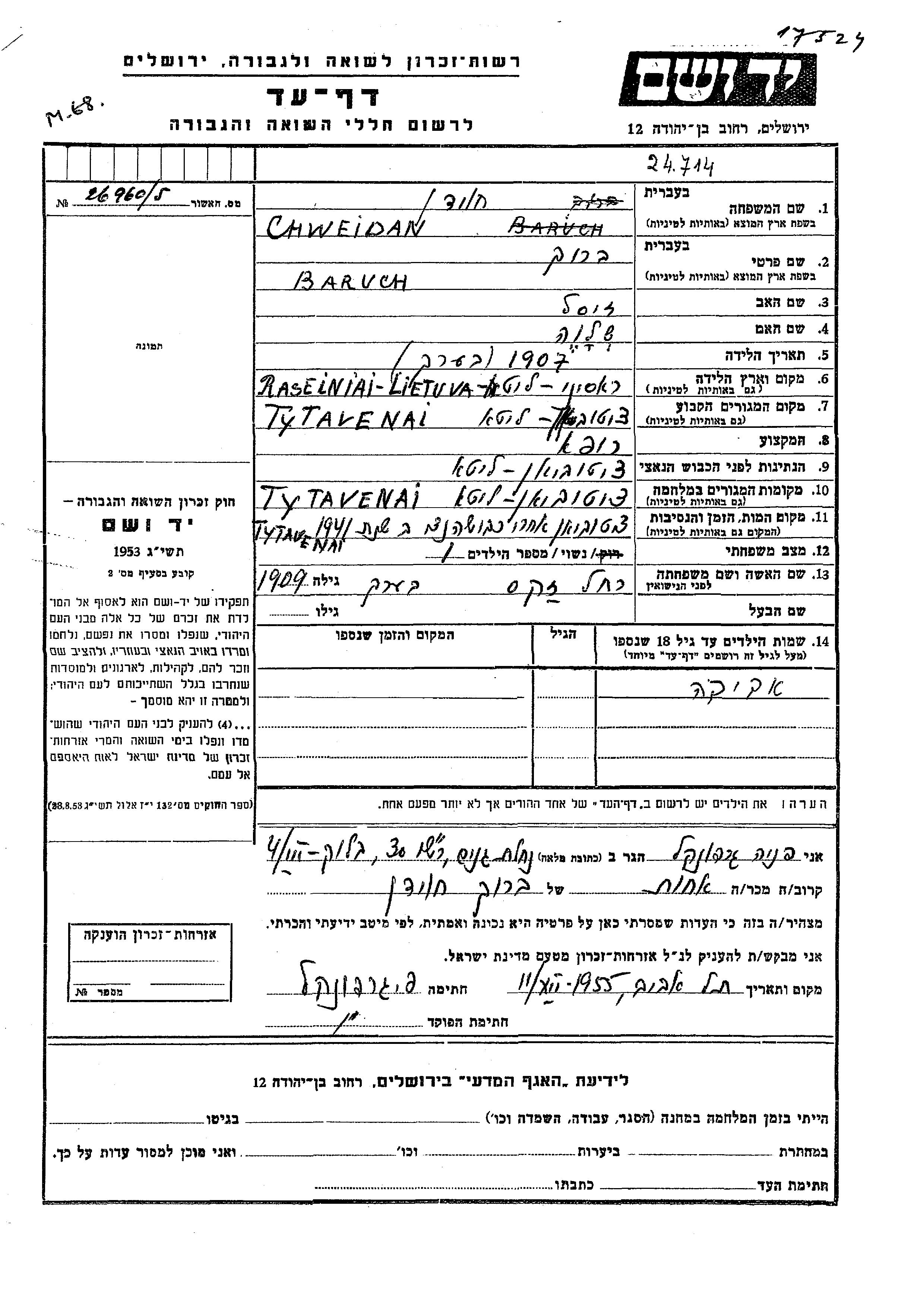 Chveidanas Baruch 1907 Citovian, Lithuania Page of Testimony