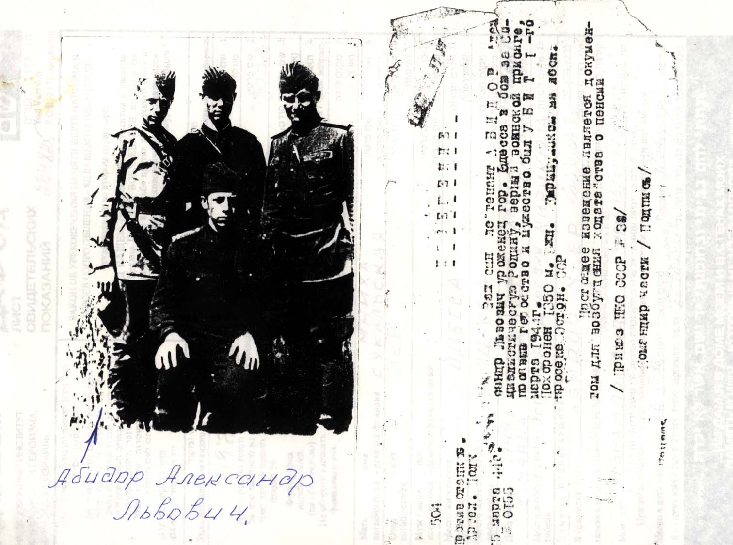 Aleksandr Abidor was born in Odessa, Ukraine (USSR), 1923. He was an officer. Prior to WWII he lived in Odessa, Ukraine (USSR).