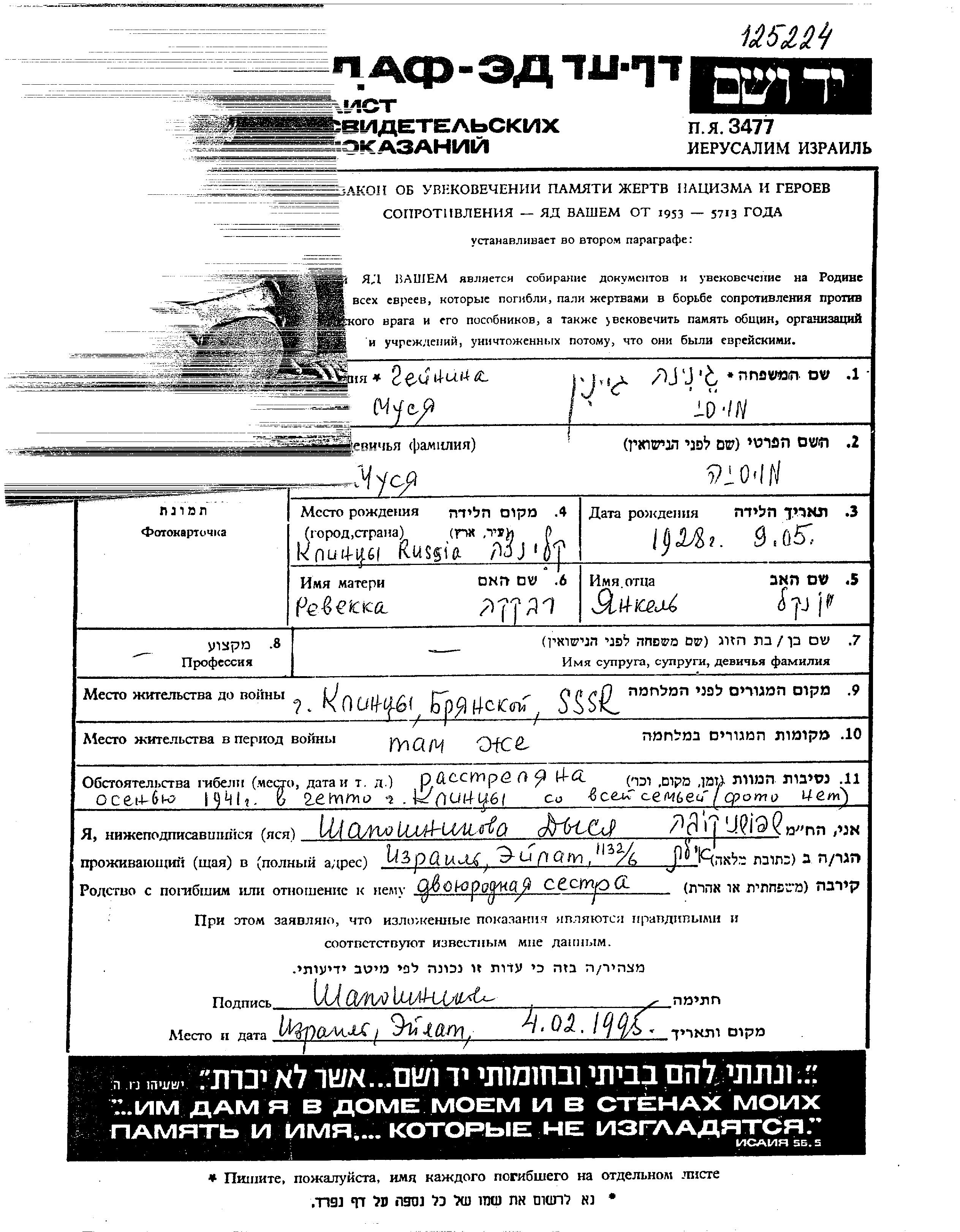 Geynin | Musia | 1928 | Klintsy, Russia (USSR) | Page of Testimony |