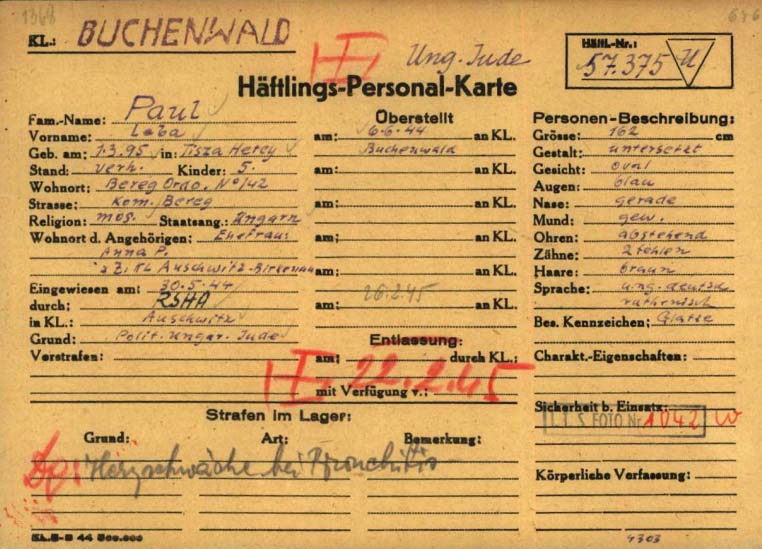 Pal was murdered in the Shoah. Place of death: Buchenwald, Germany, 22/02/1945.
