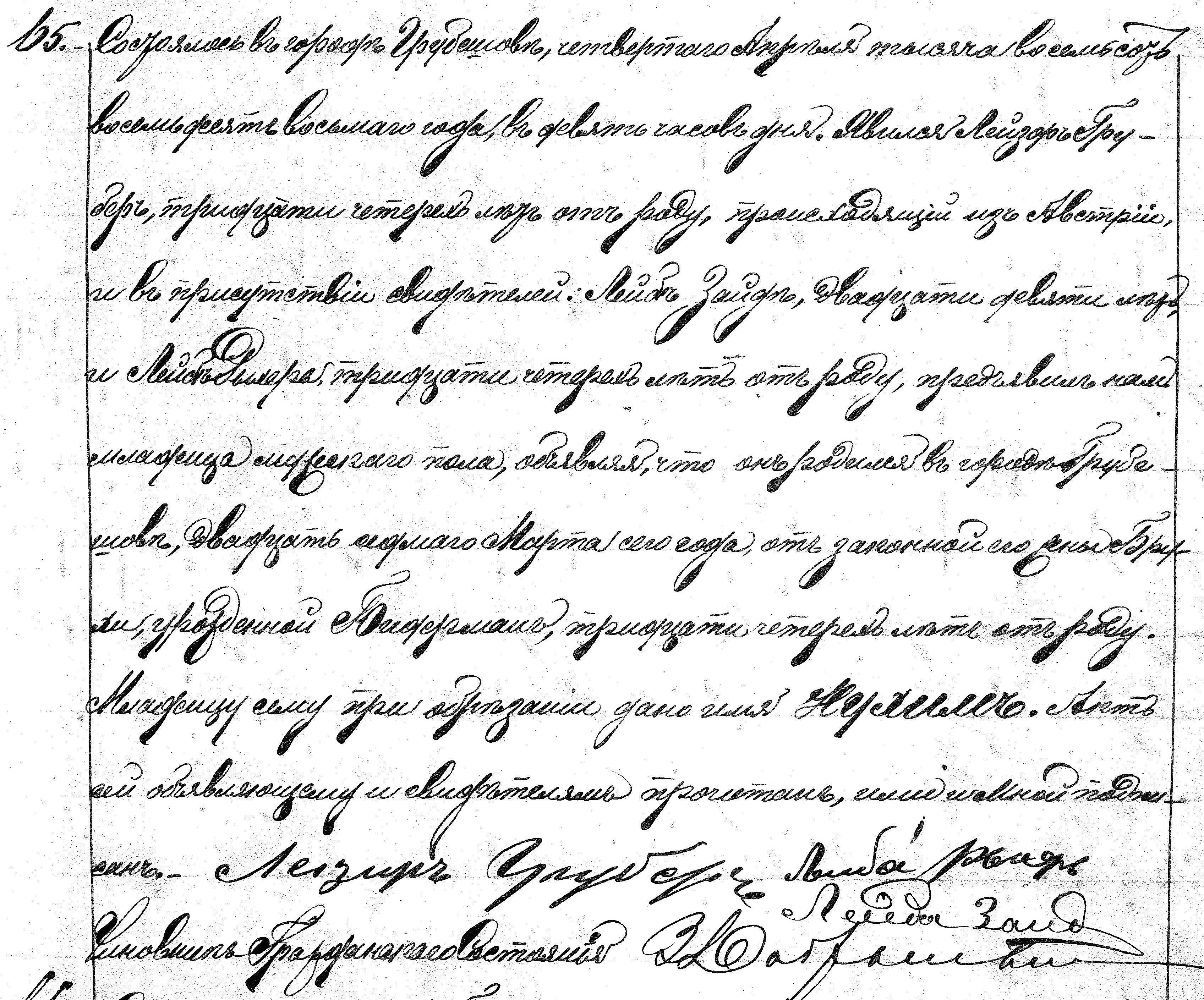 | Gruber | Nukhim | 1888 | unstated place, | Birth certificate |