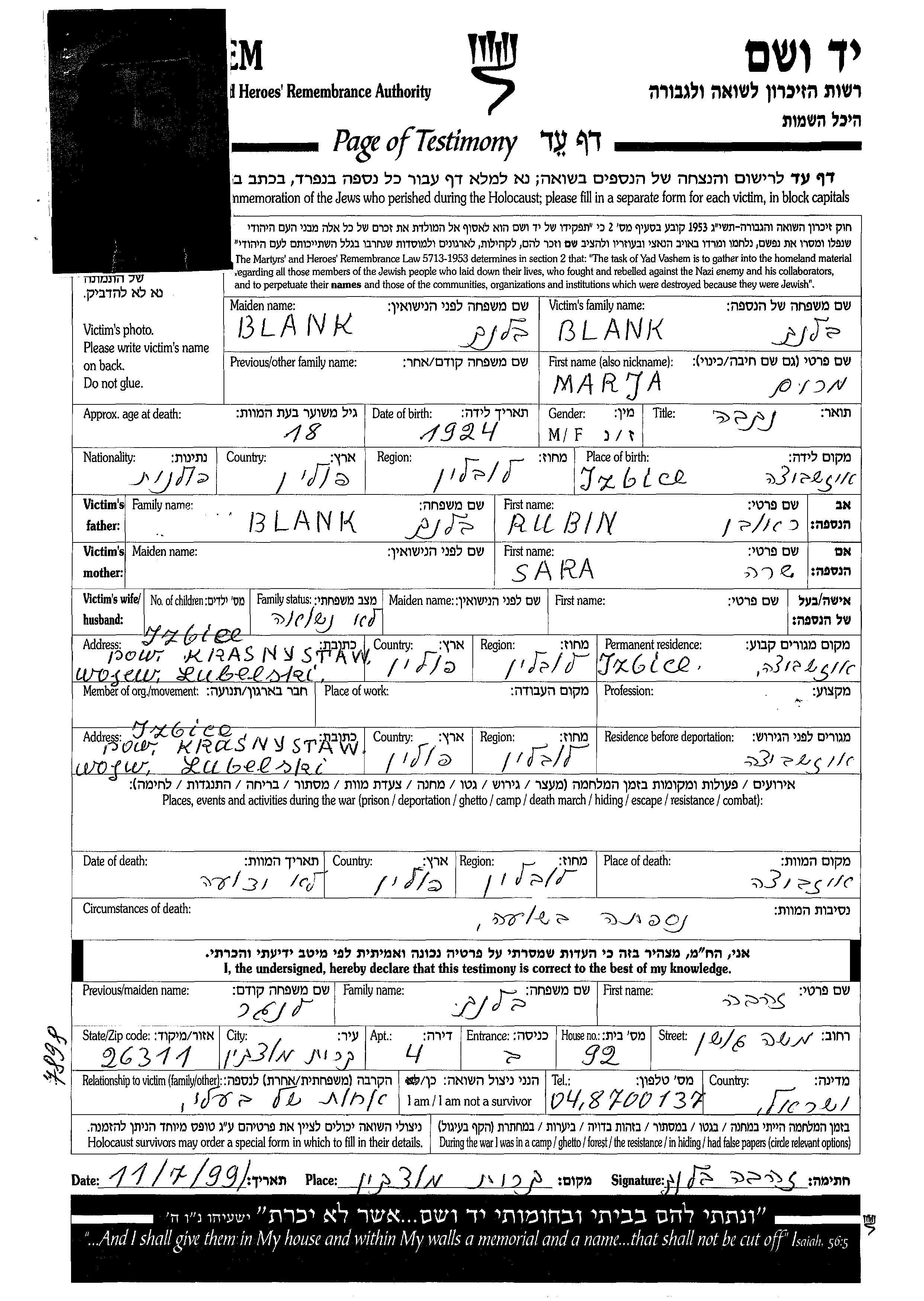 Yad Vashem - Pages of Testimony Names Memorial Collection