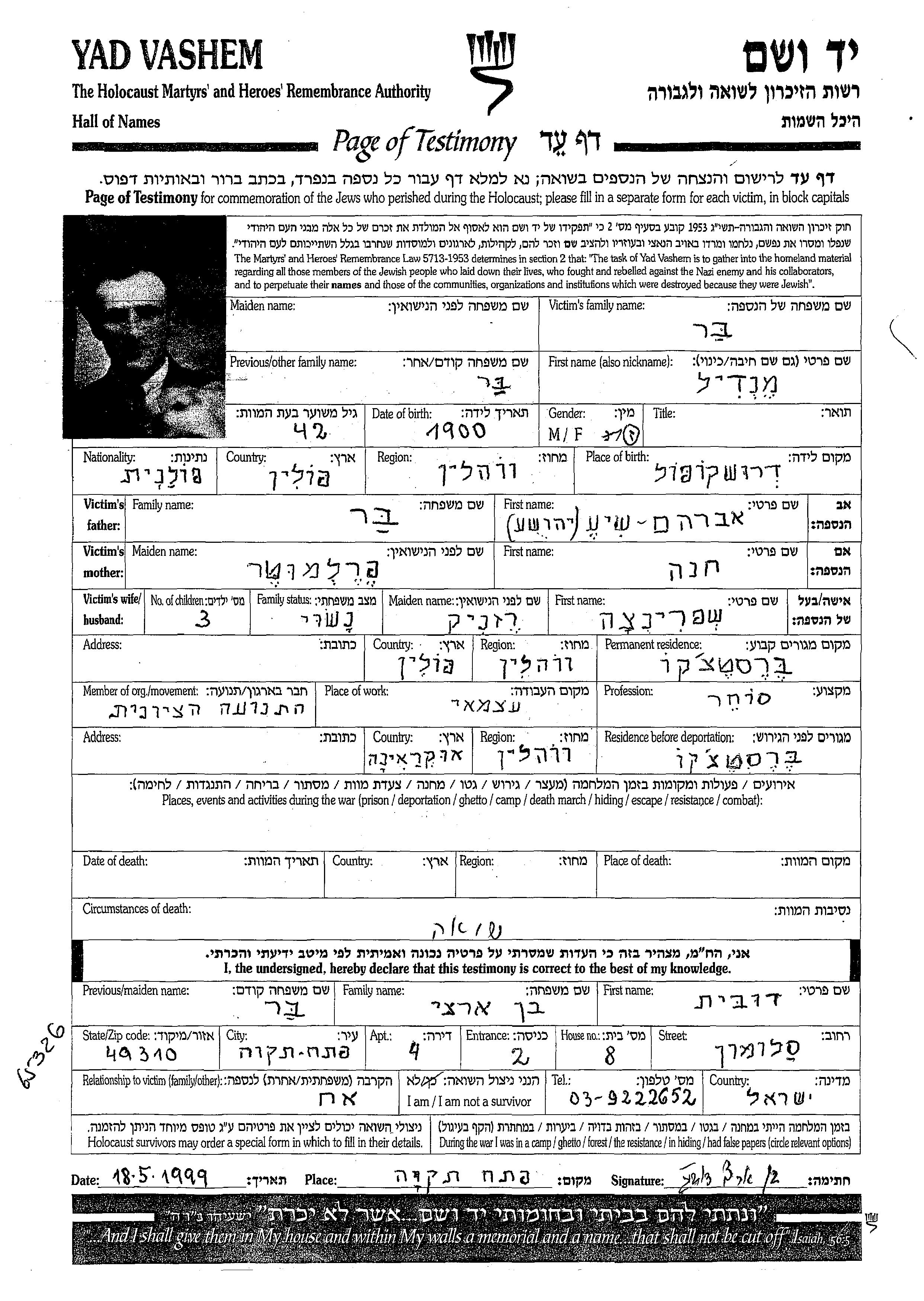 Yad Vashem - Pages of Testimony Names Memorial Collection