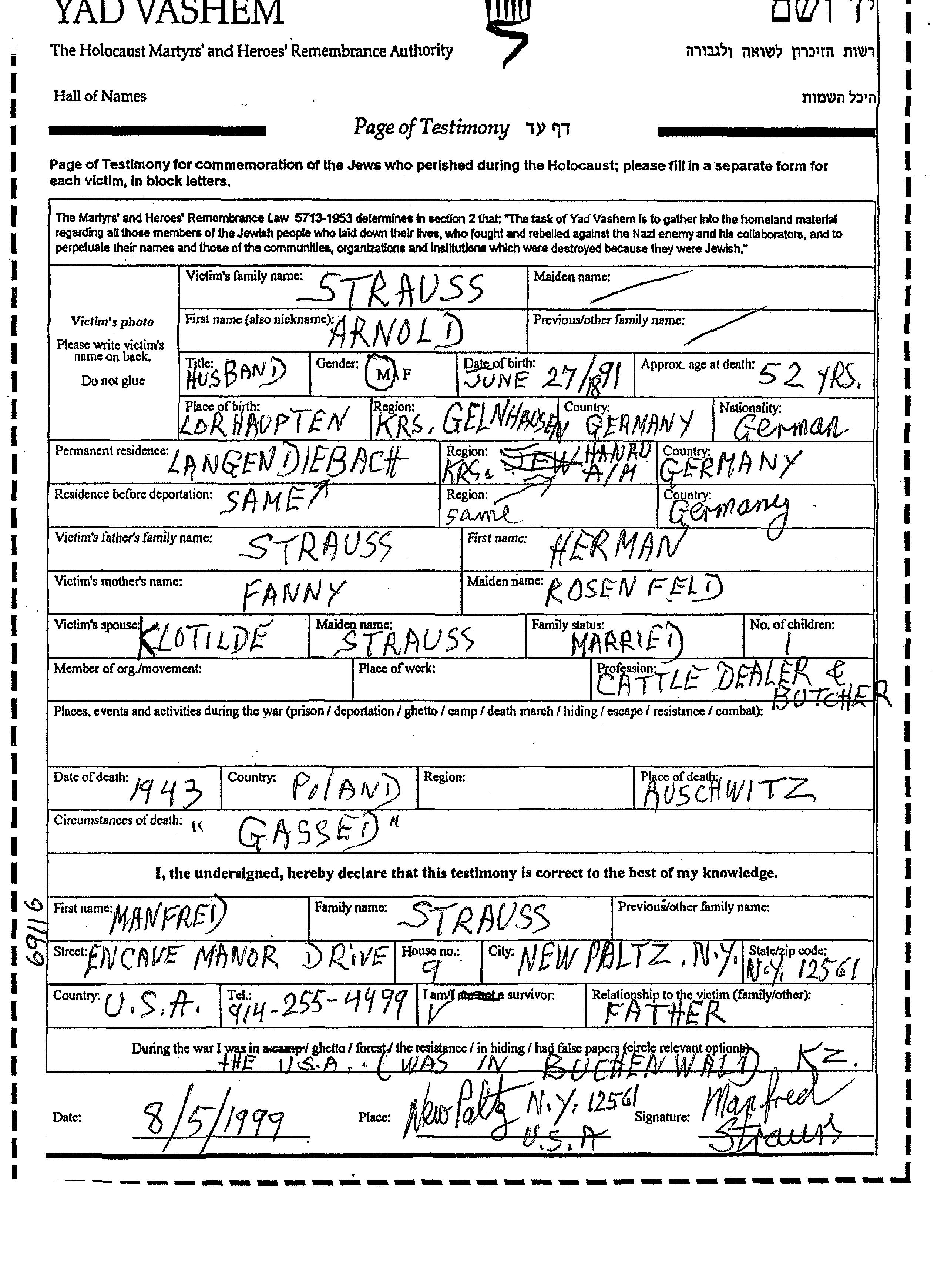 Search by last name of the submitter of the Page of Testimony, including diminutives or nicknames