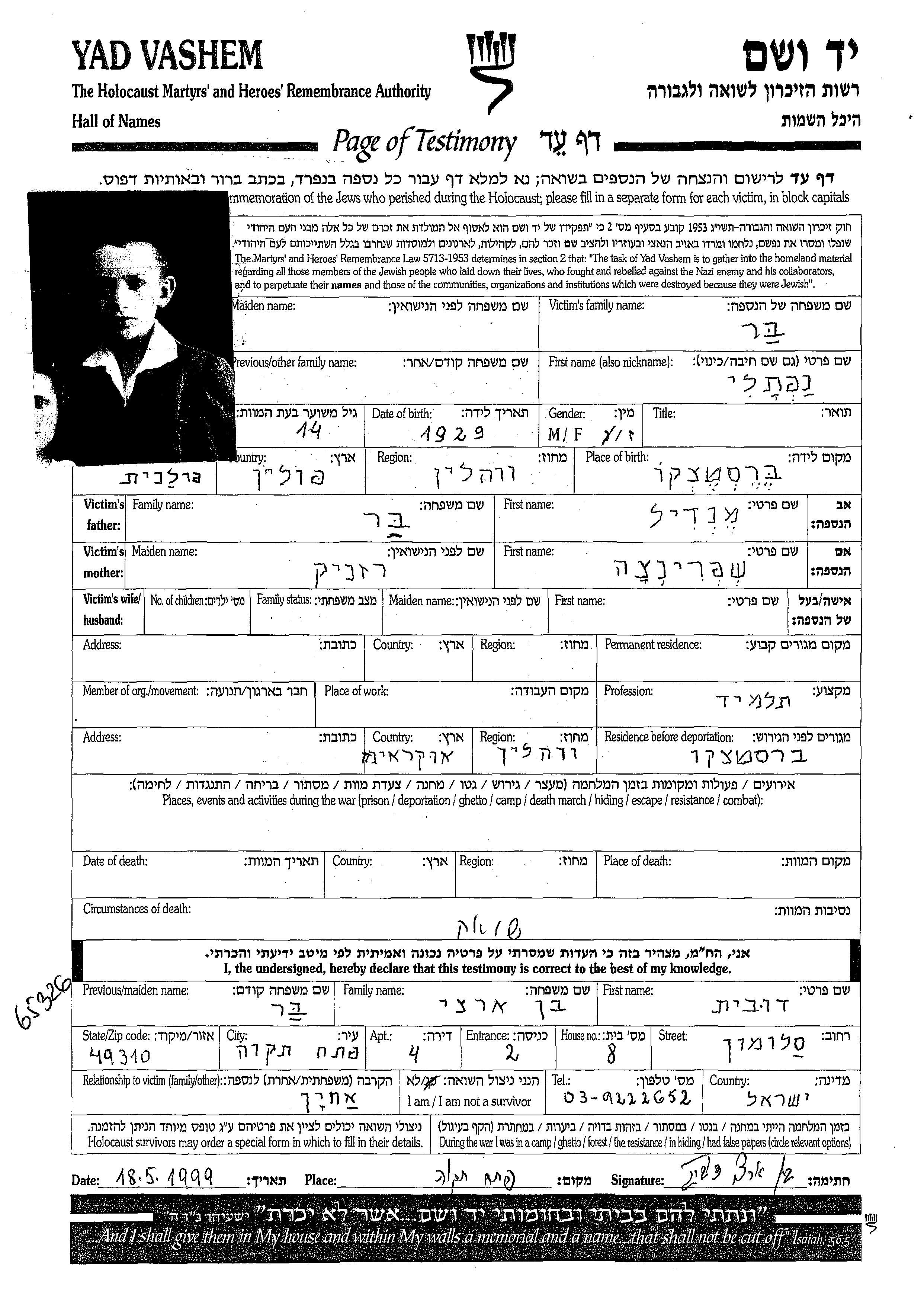 Search by last name of the submitter of the Page of Testimony, including diminutives or nicknames