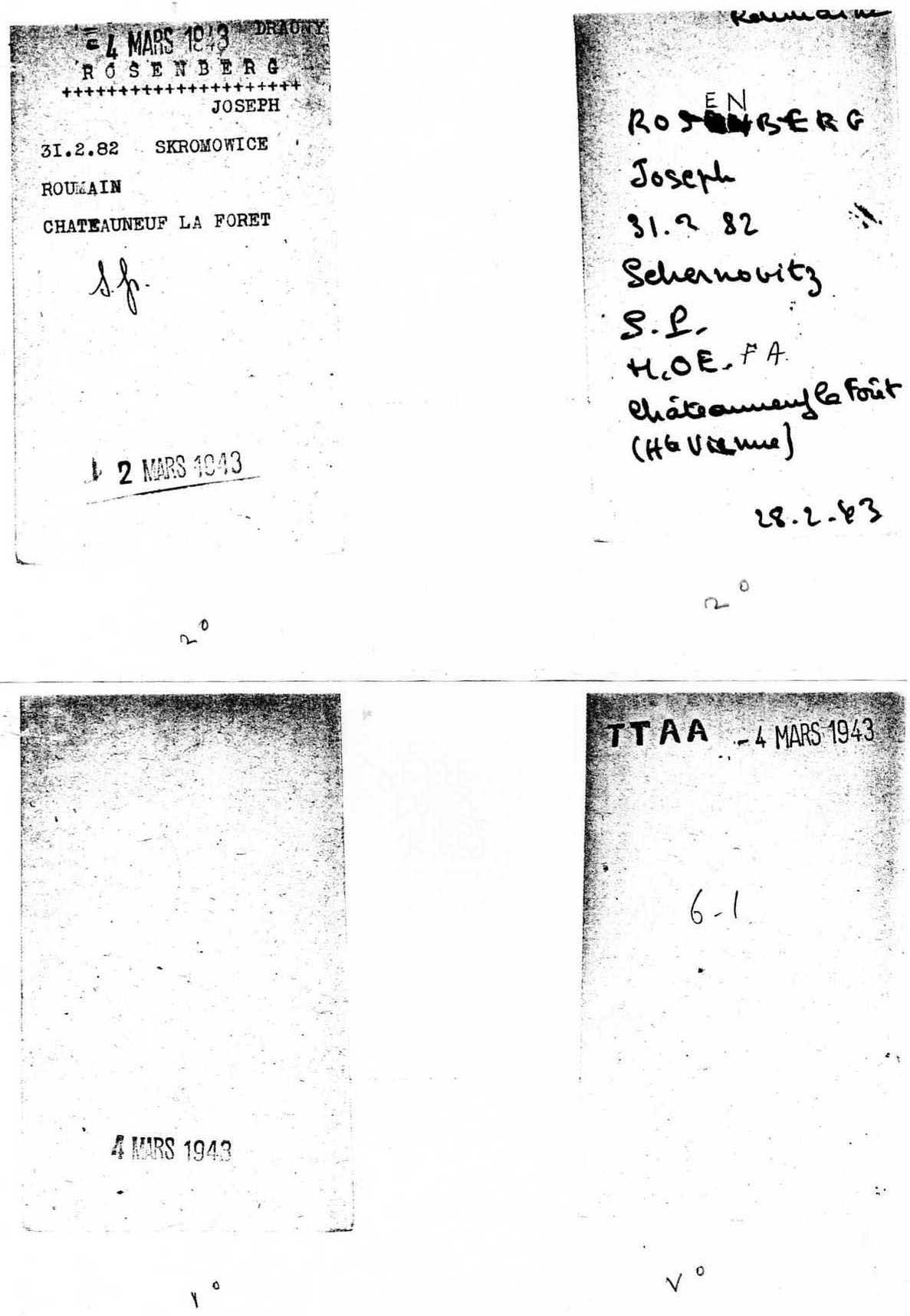 Digital File : p72265. Document of Rosenberg Joseph, from Drancy. See more details in Additional Info.