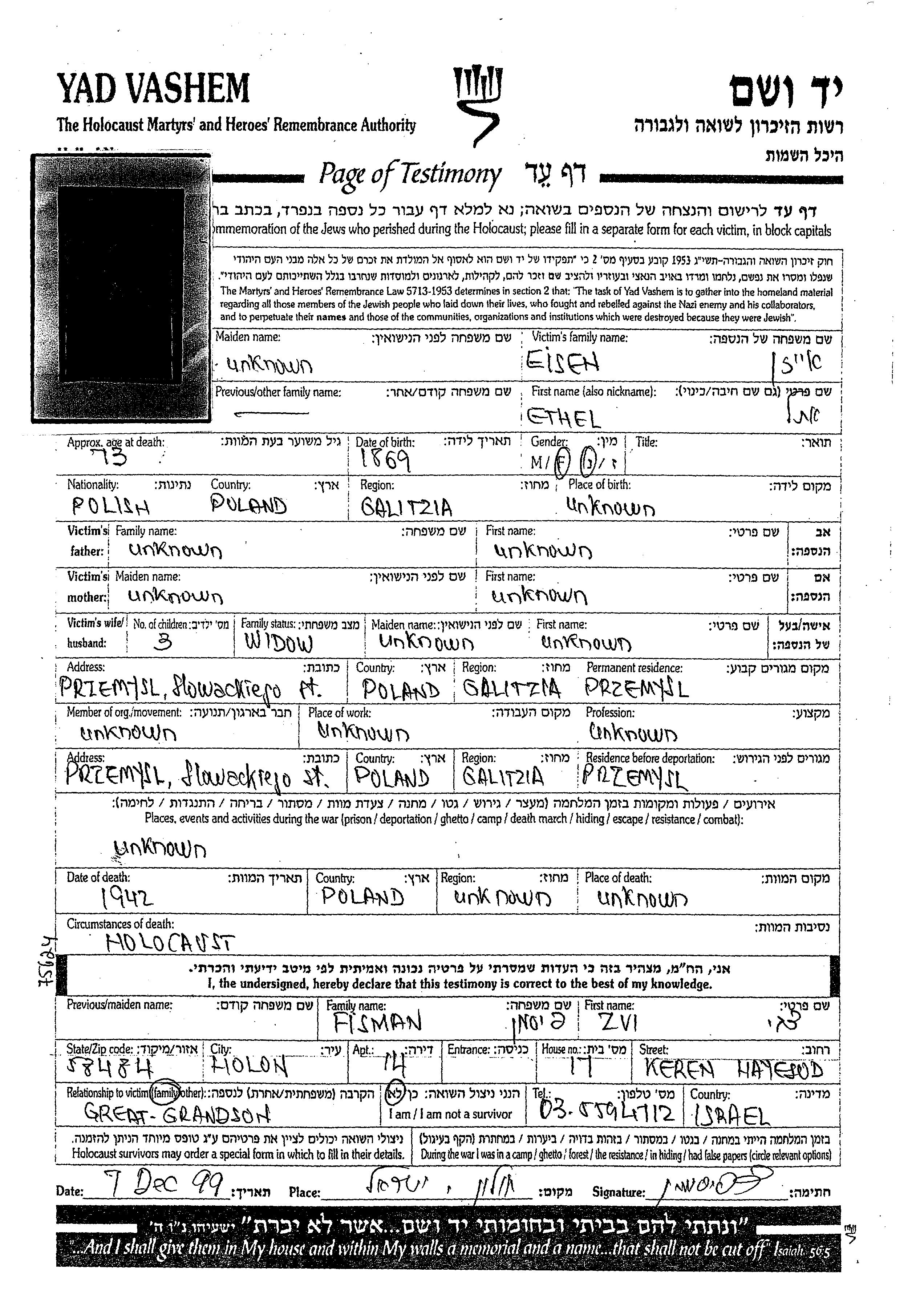 Yad Vashem - Pages of Testimony Names Memorial Collection