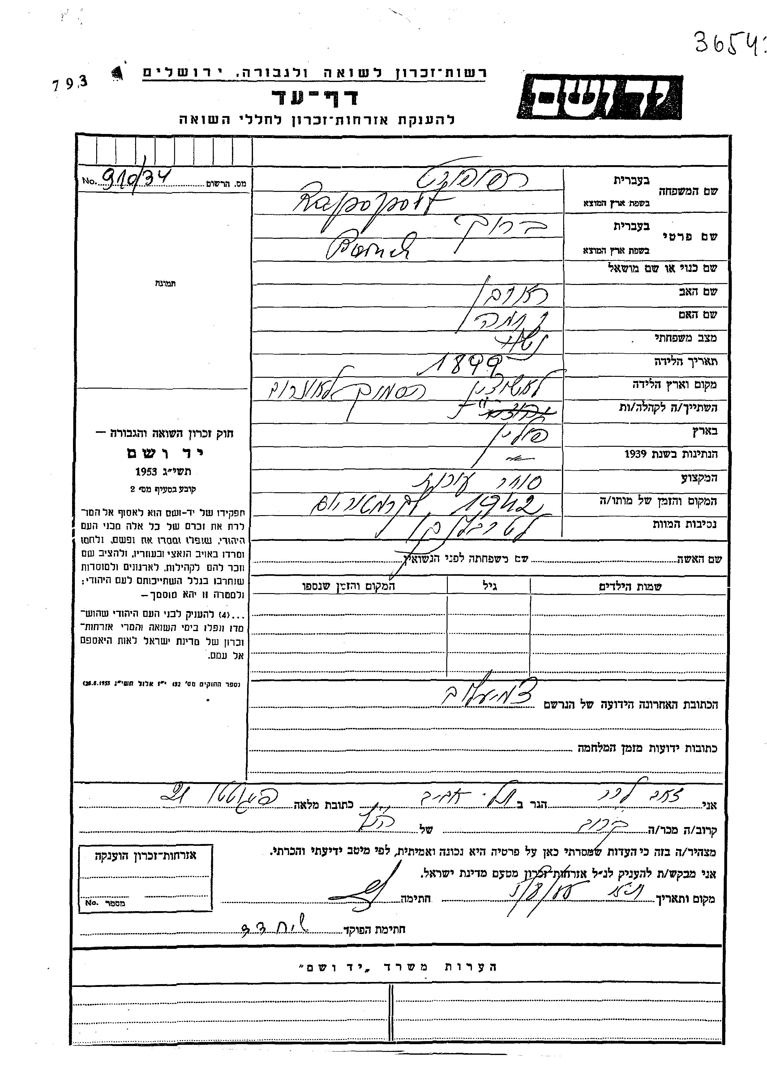 Yad Vashem - Pages of Testimony Names Memorial Collection
