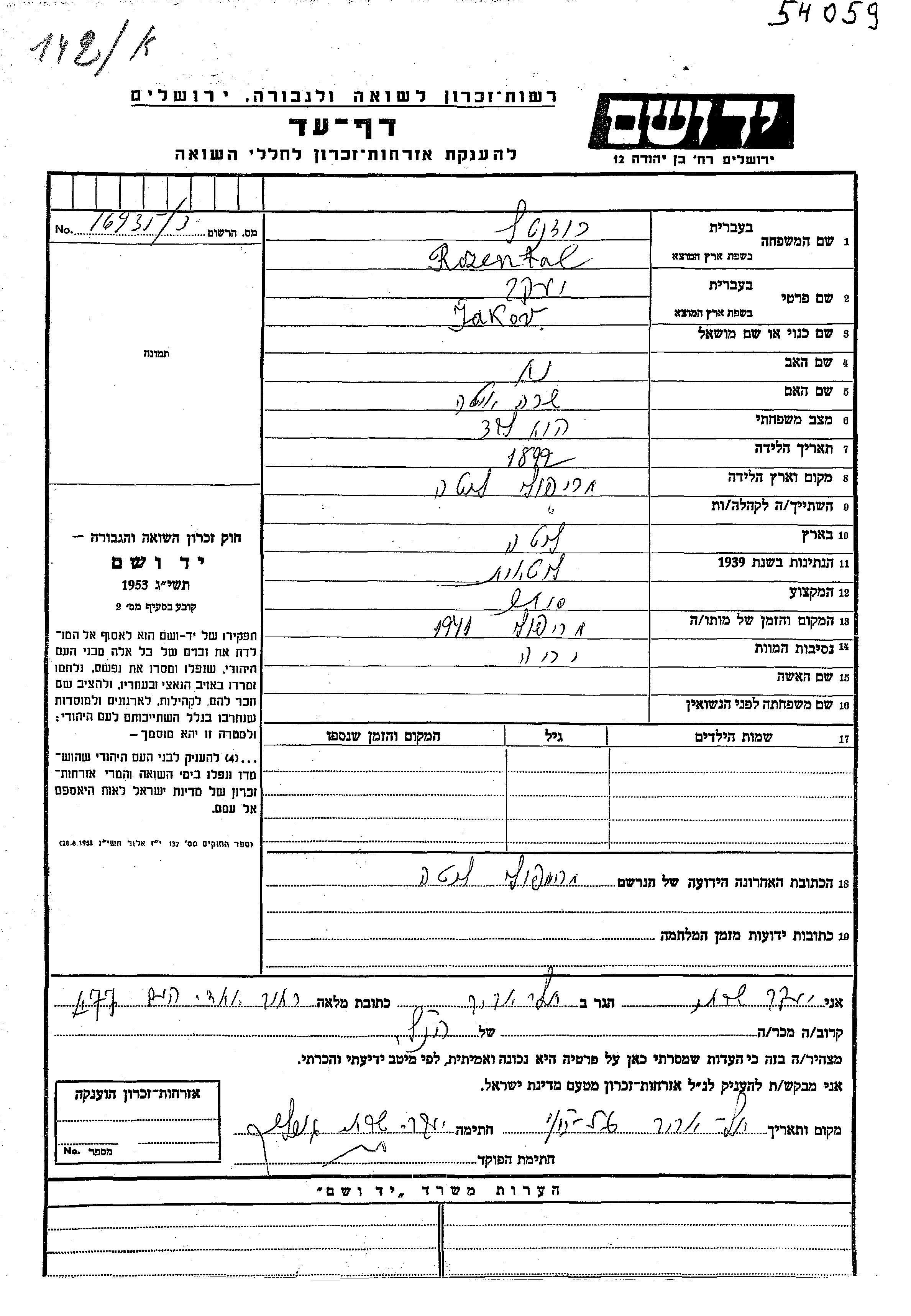 Rozental Jakov 1892 Mariampole, Lithuania Page of Testimony