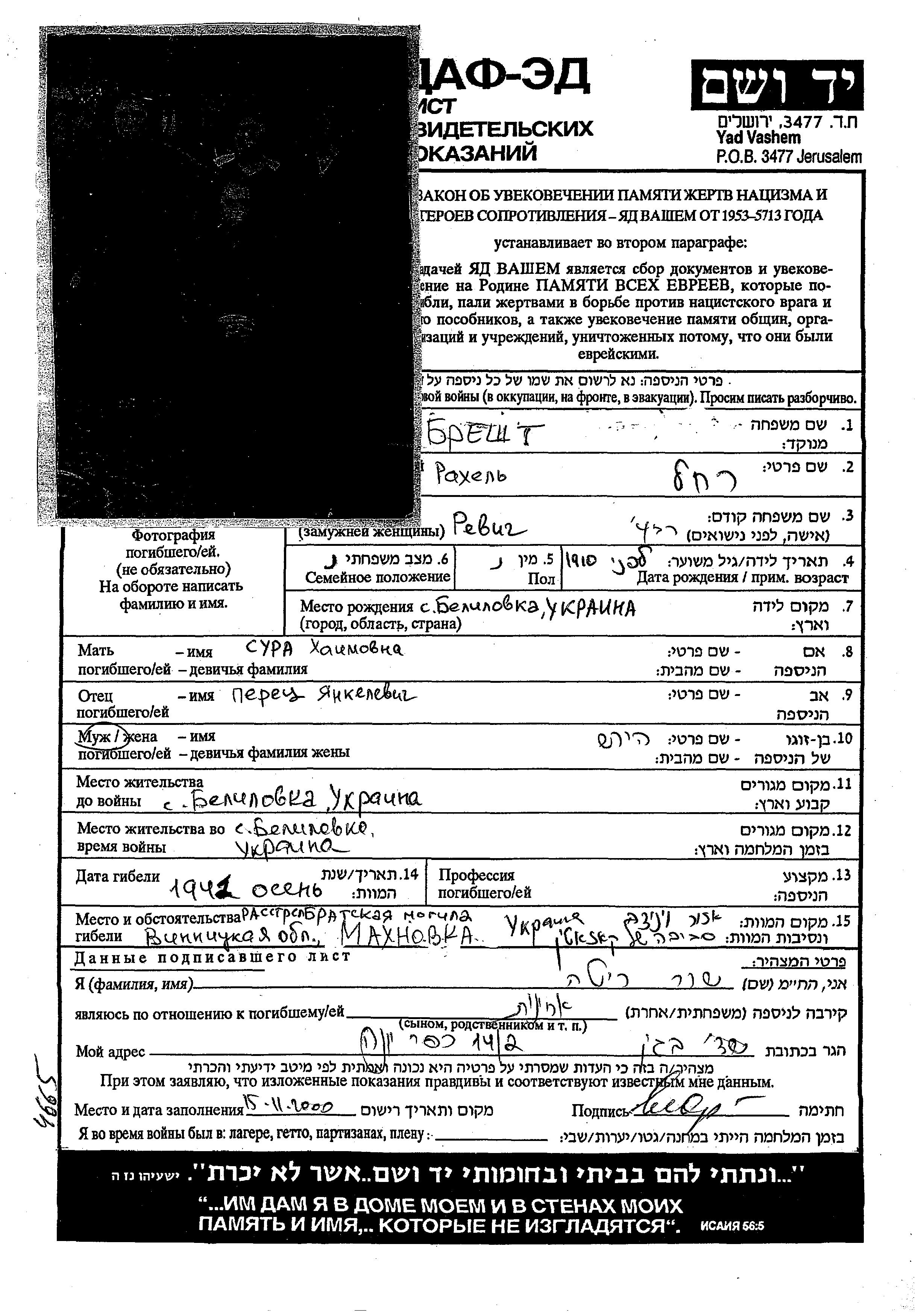 Yad Vashem - Pages of Testimony Names Memorial Collection