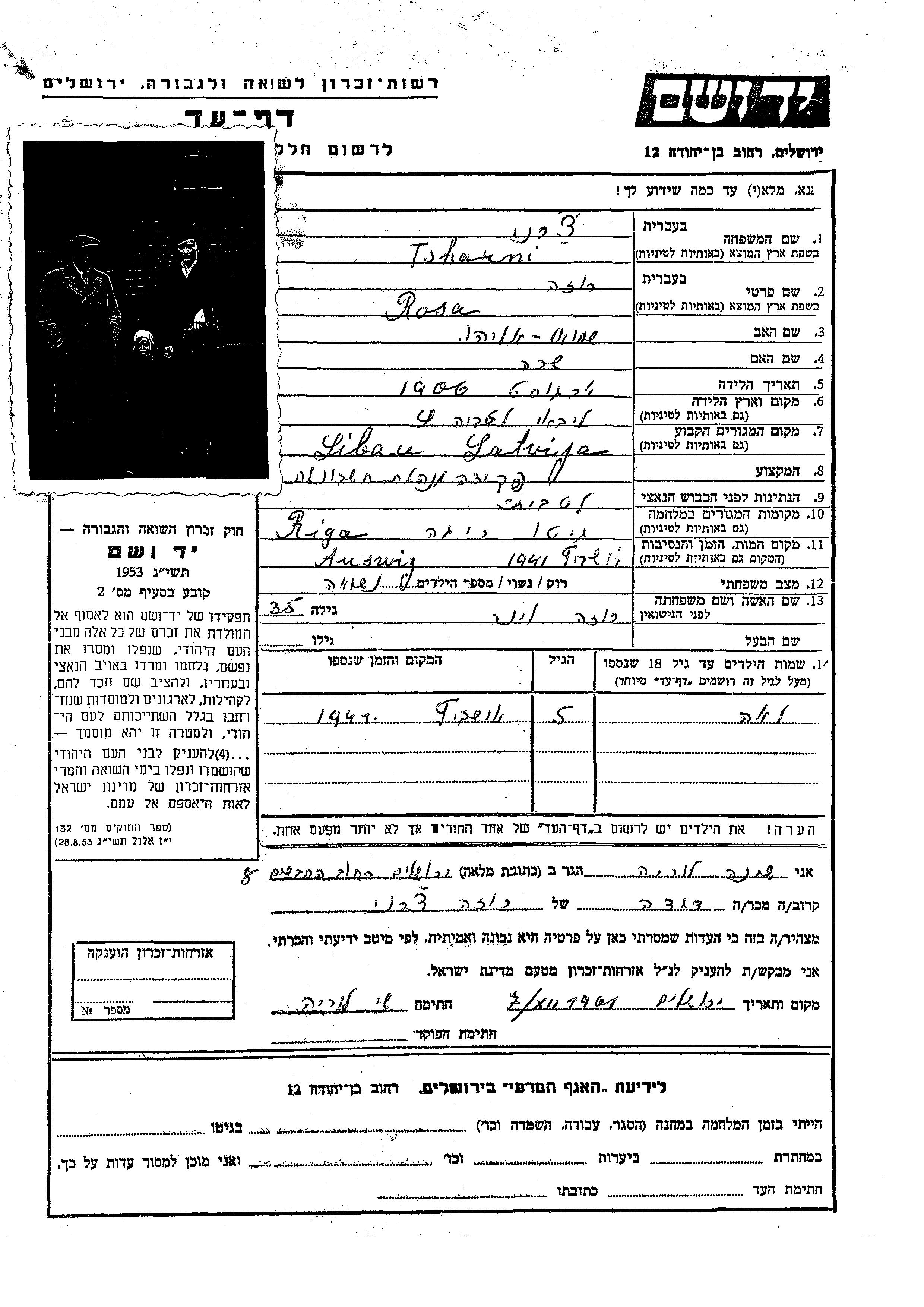 Tsharni Rosa 1906 Libau, Latvia Page of Testimony