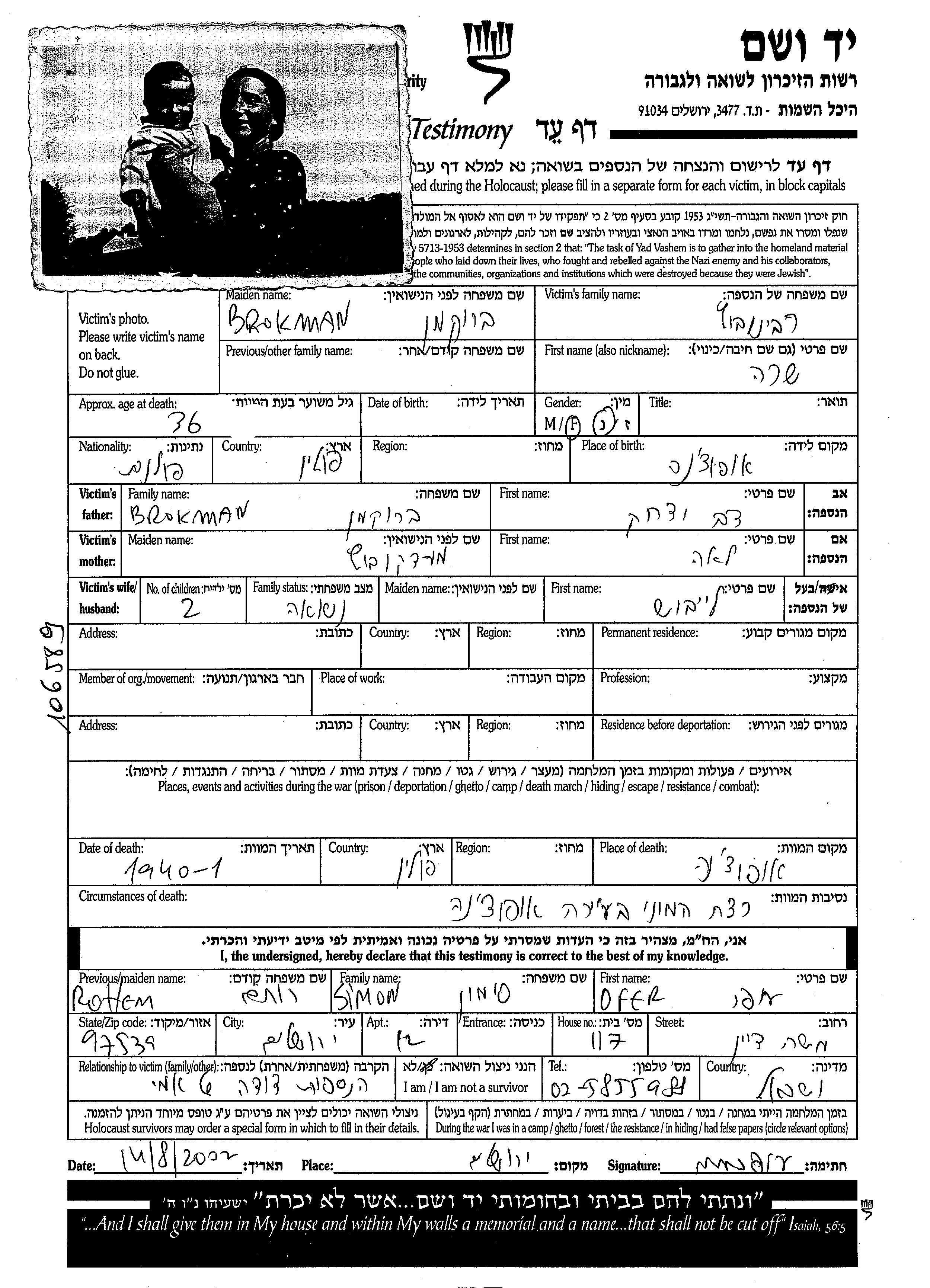 Search by last name of the submitter of the Page of Testimony, including diminutives or nicknames