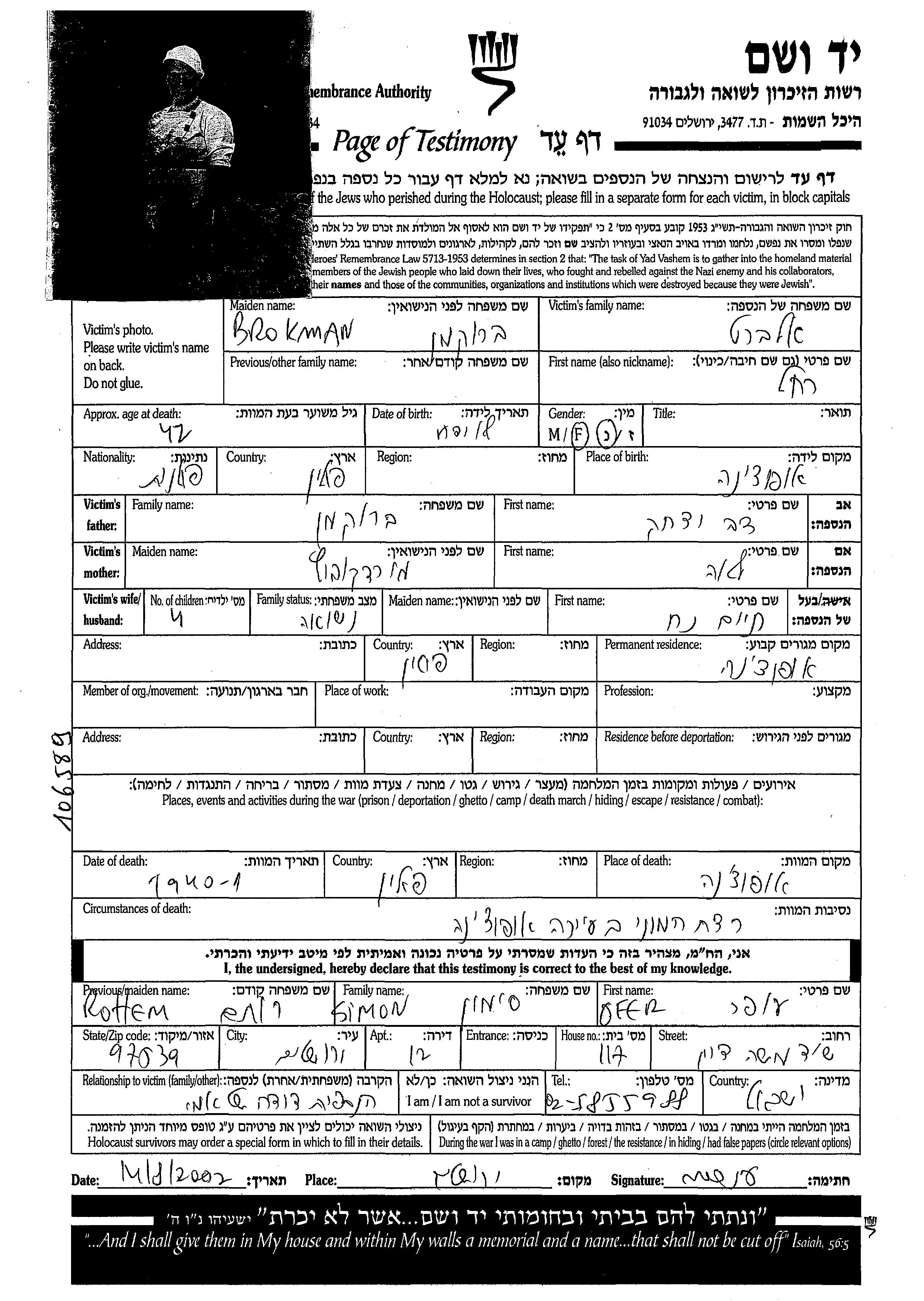 Yad Vashem - Pages of Testimony Names Memorial Collection