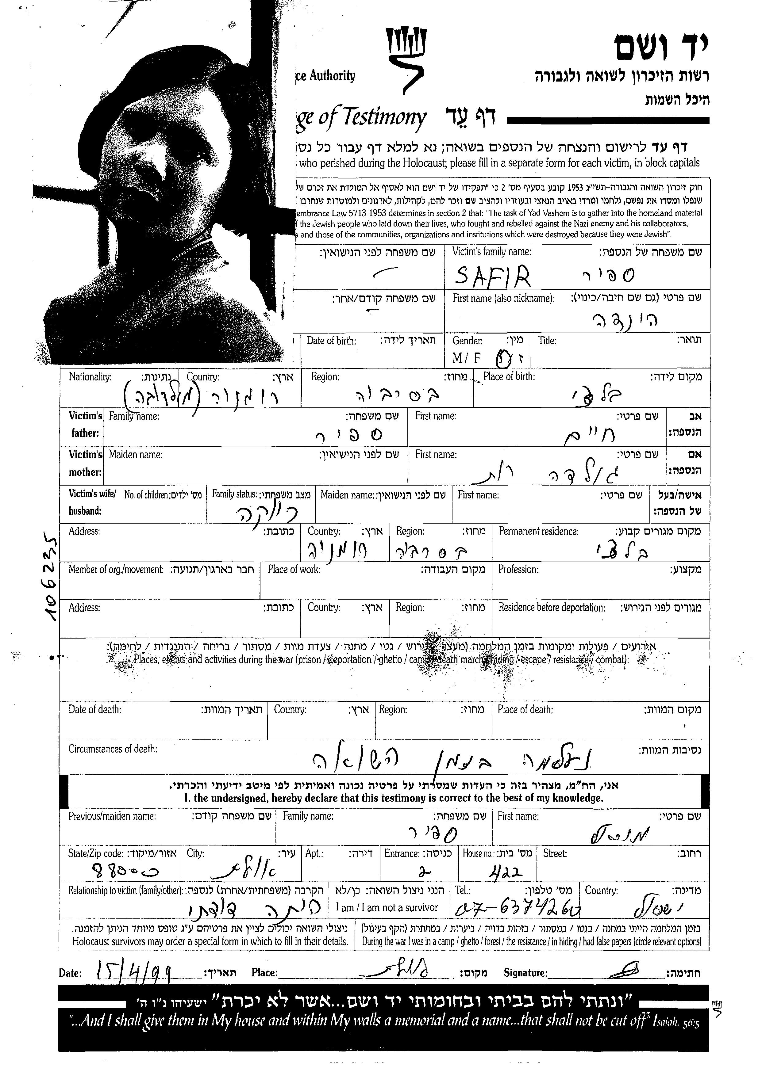 Yad Vashem - Pages of Testimony Names Memorial Collection
