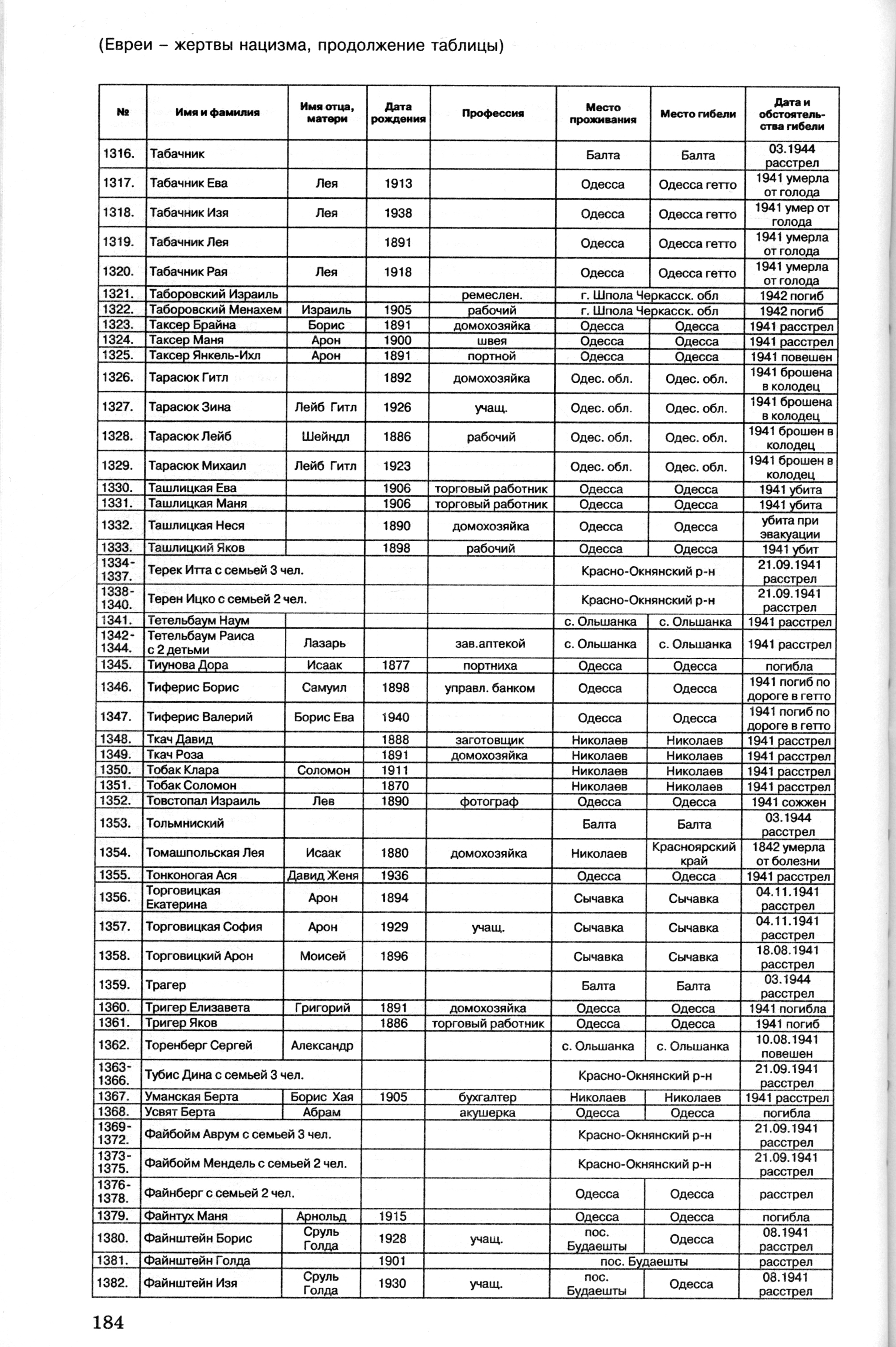 Tiunova Dora 1877 Odessa, Ukraine (USSR) List of persecuted persons