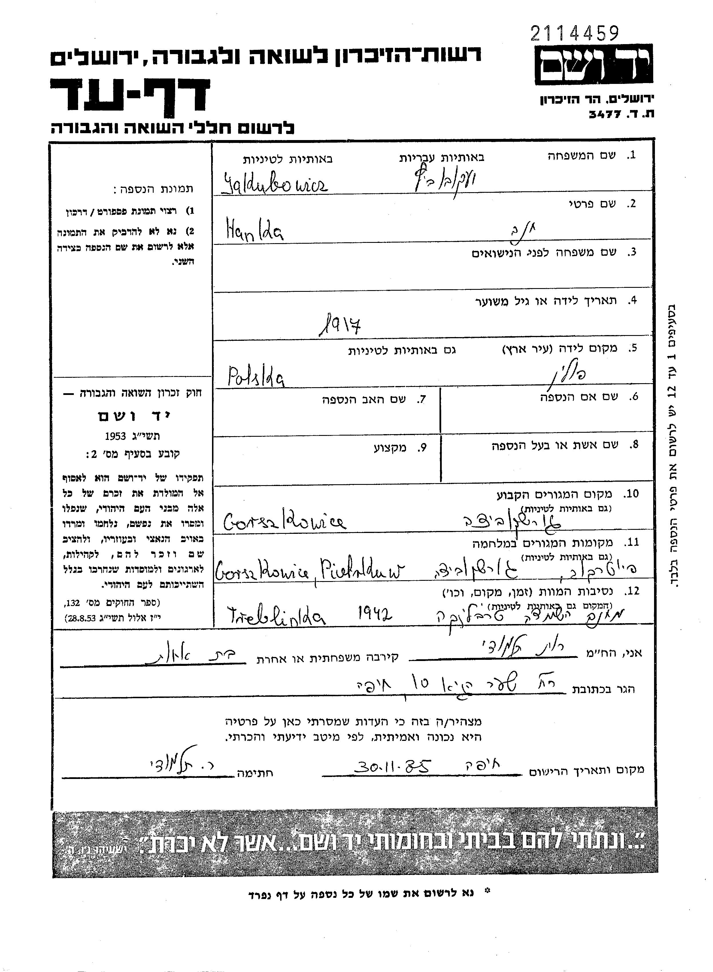 Yad Vashem - Pages of Testimony Names Memorial Collection