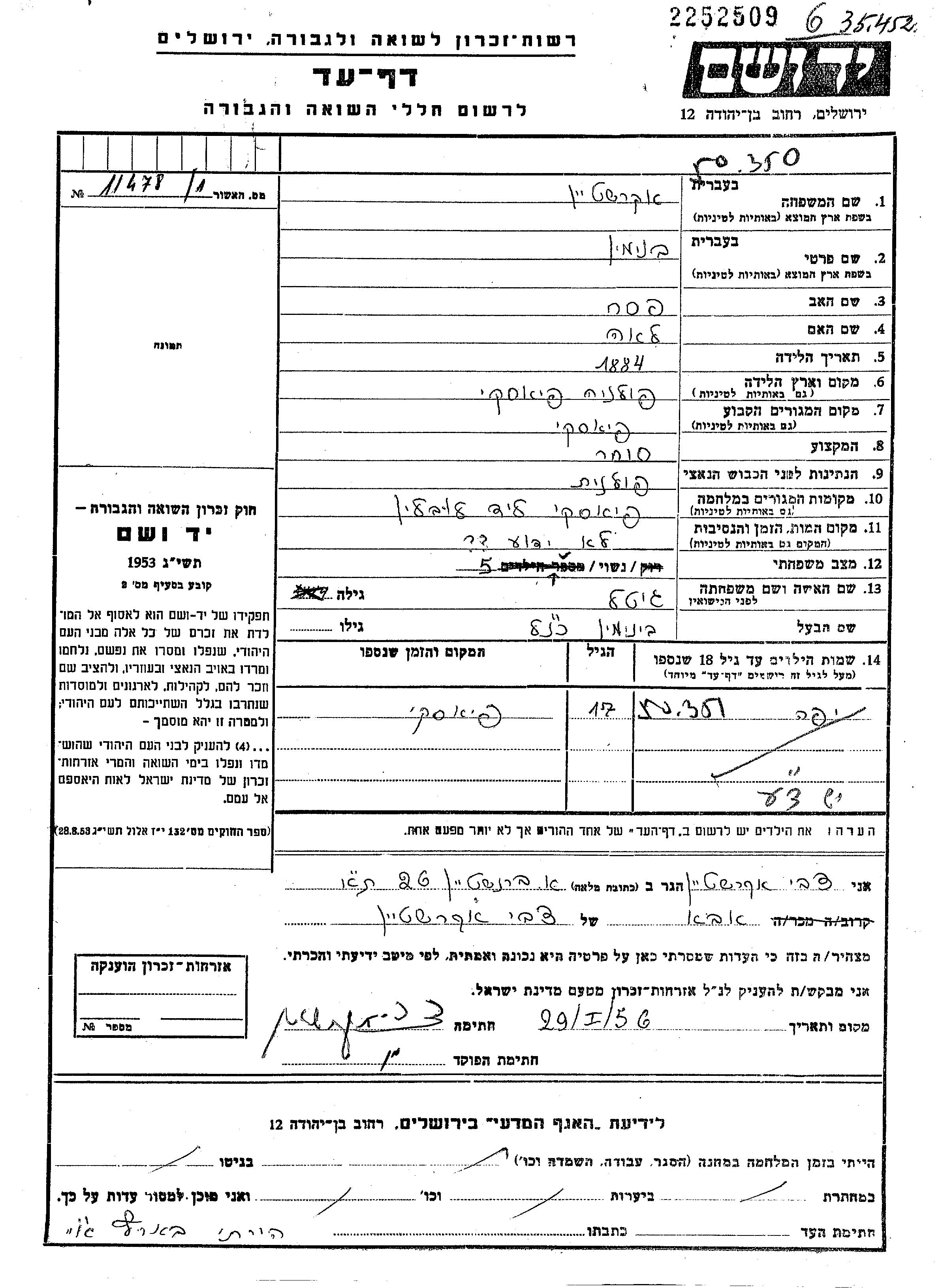 Akershtein | Beniamin | 1884 | Piaski, Poland | Page of Testimony |