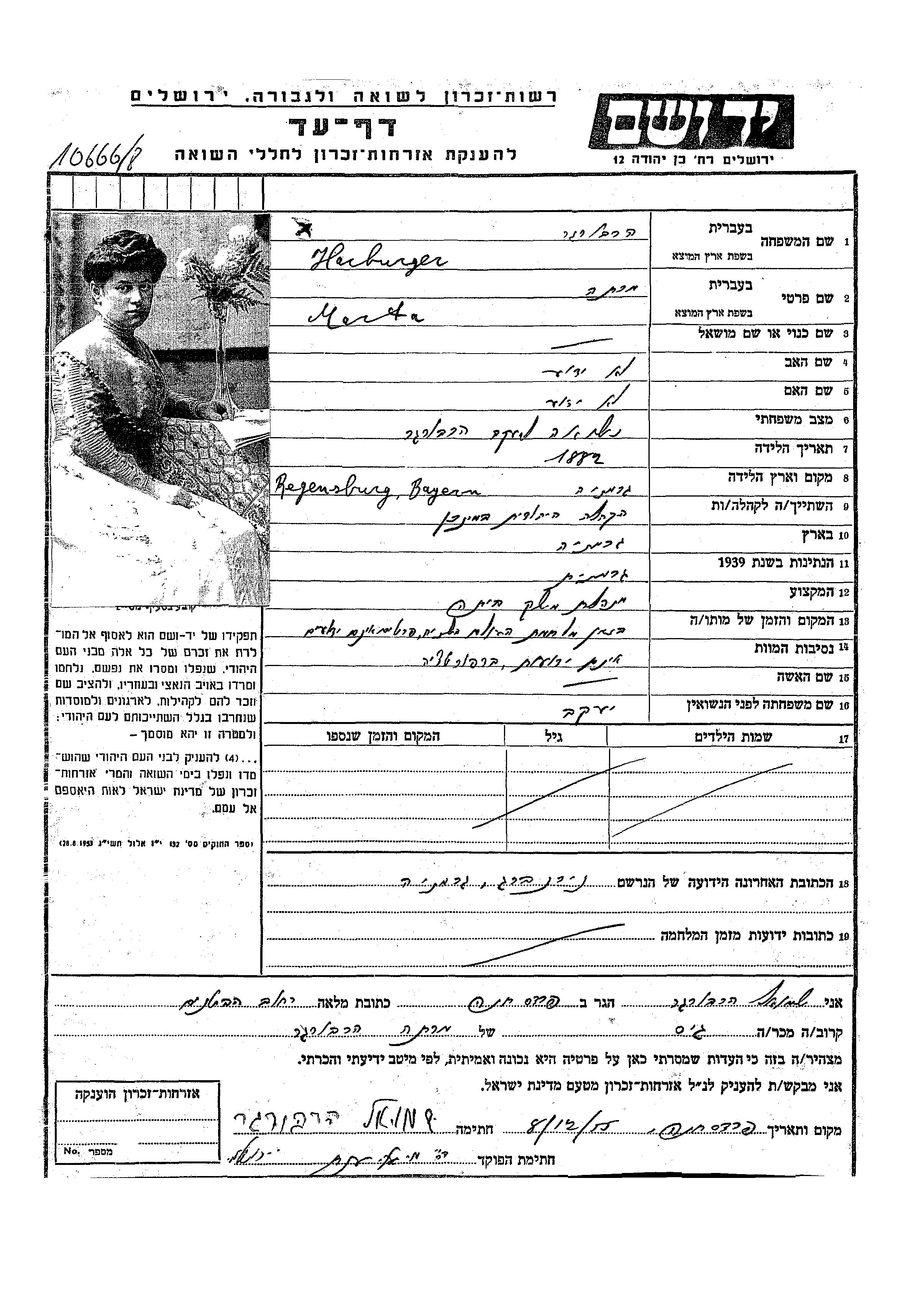 Harburger | Marta | 1882 | Nuernberg, Germany | Page of Testimony |
