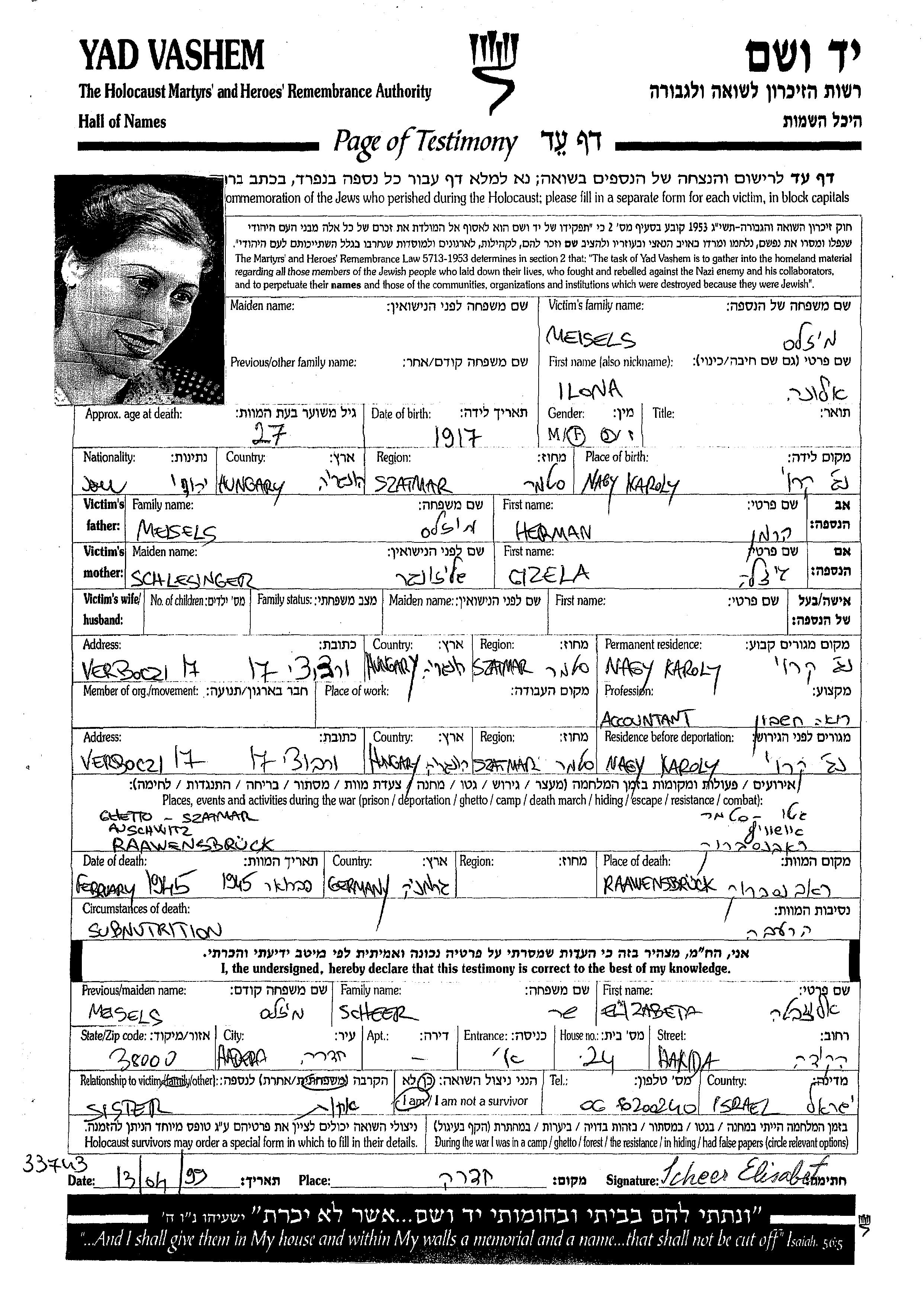 Yad Vashem - Pages of Testimony Names Memorial Collection