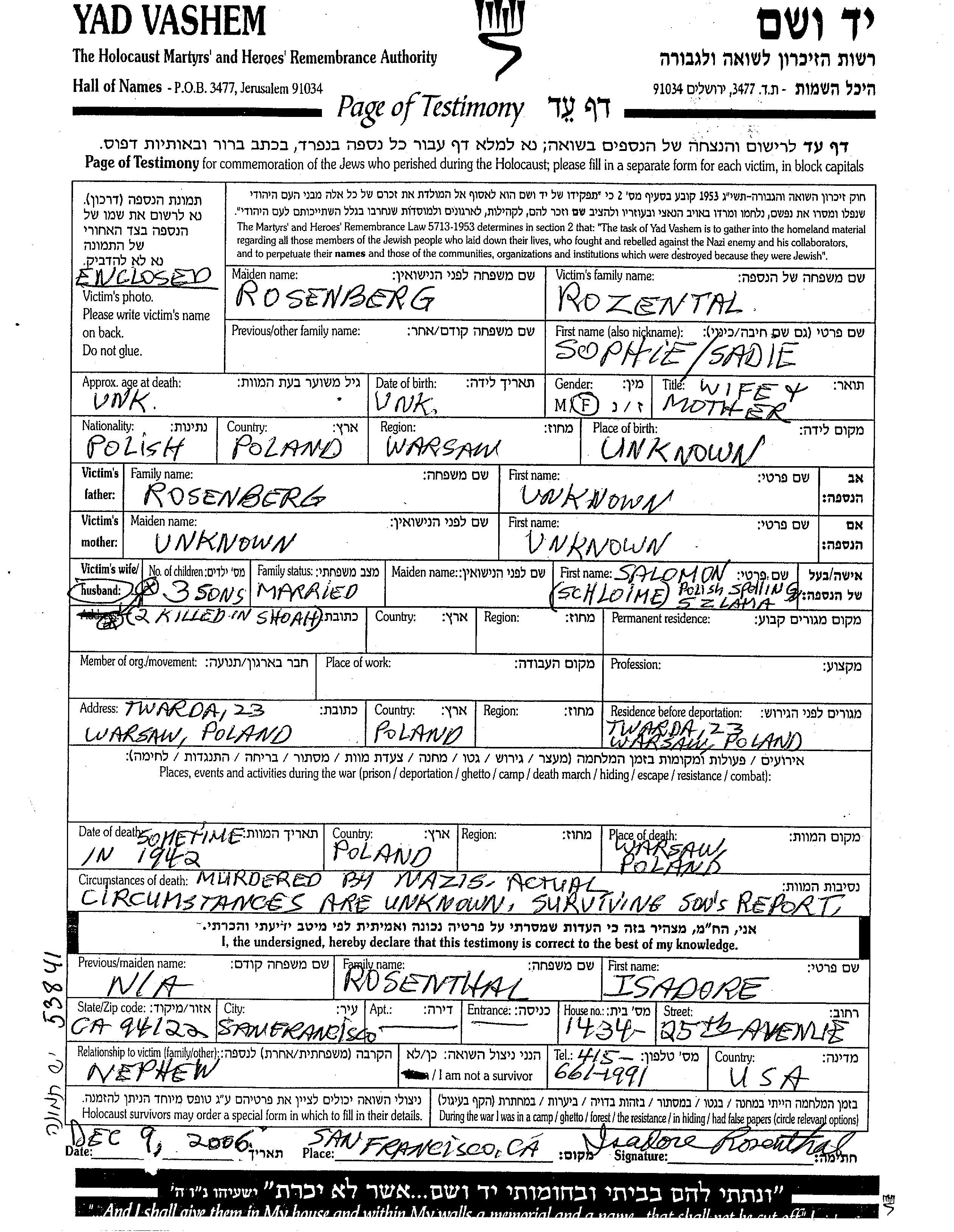 Search by last name of the submitter of the Page of Testimony, including diminutives or nicknames