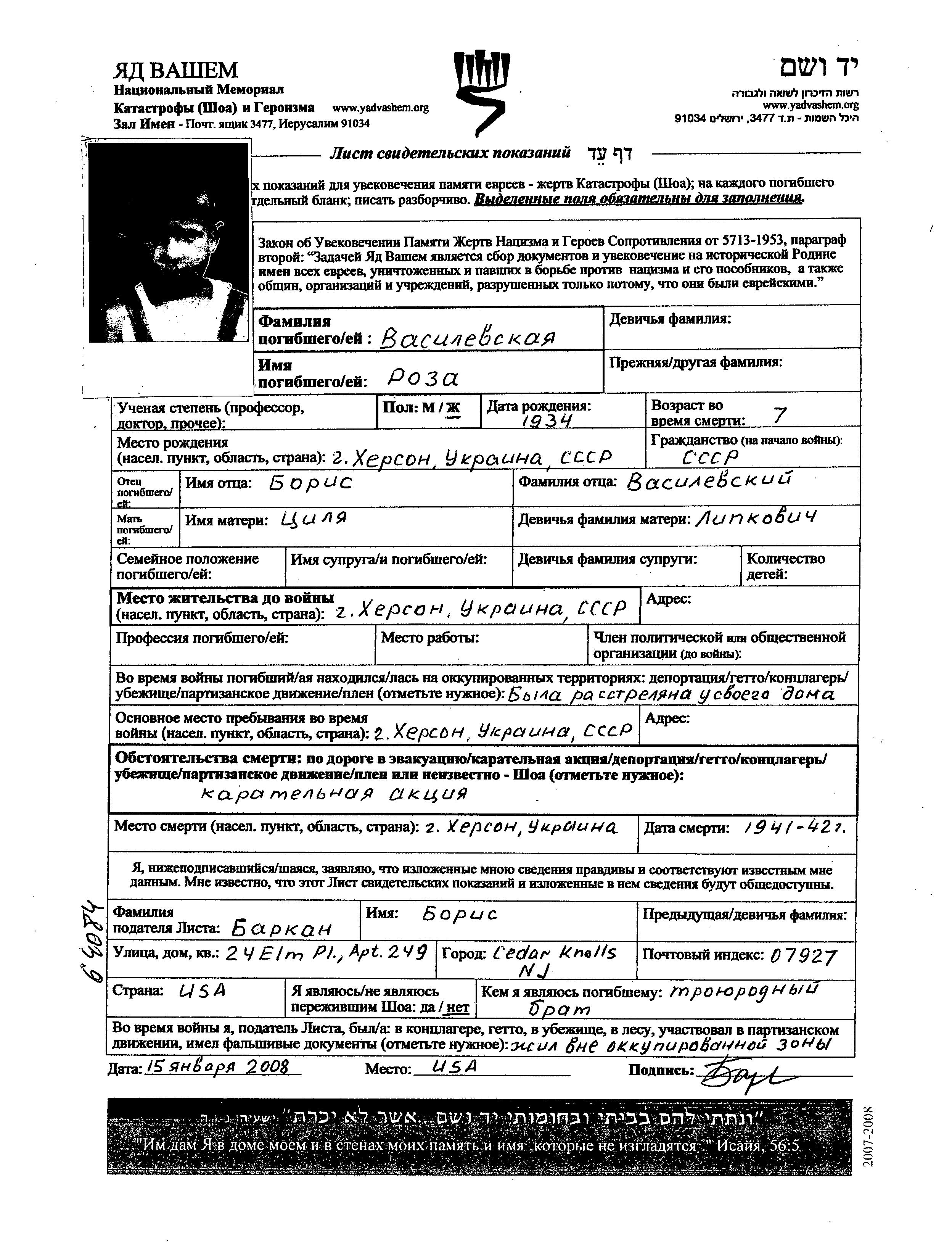 Yad Vashem - Pages of Testimony Names Memorial Collection