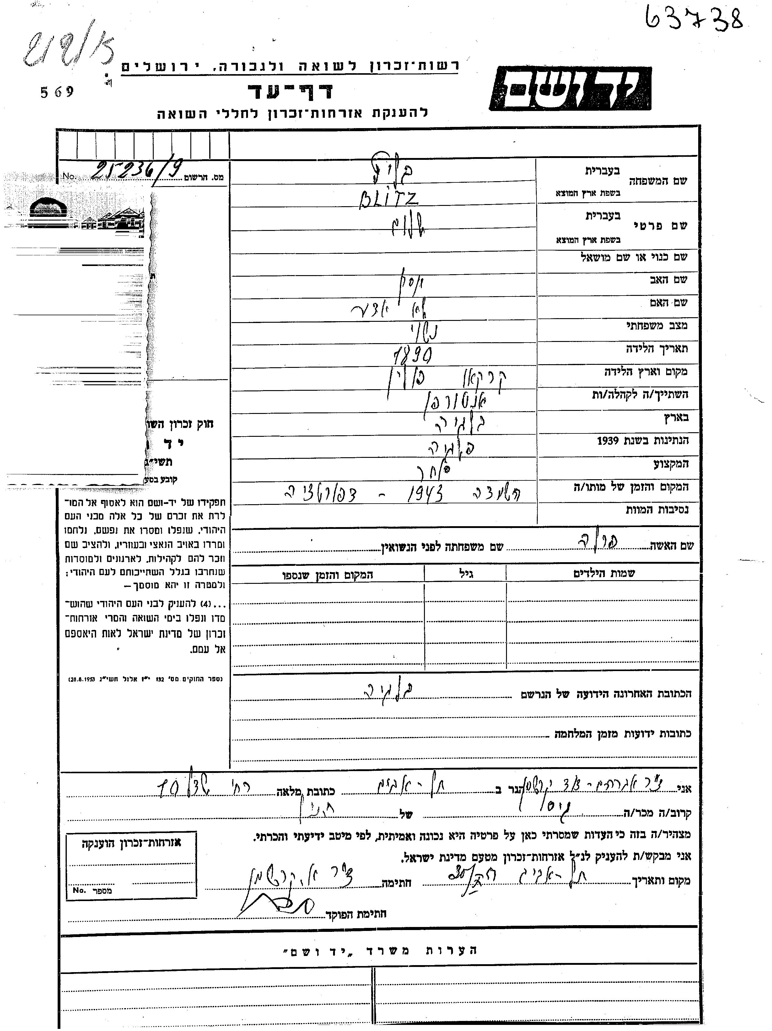 Search by last name of the submitter of the Page of Testimony, including diminutives or nicknames