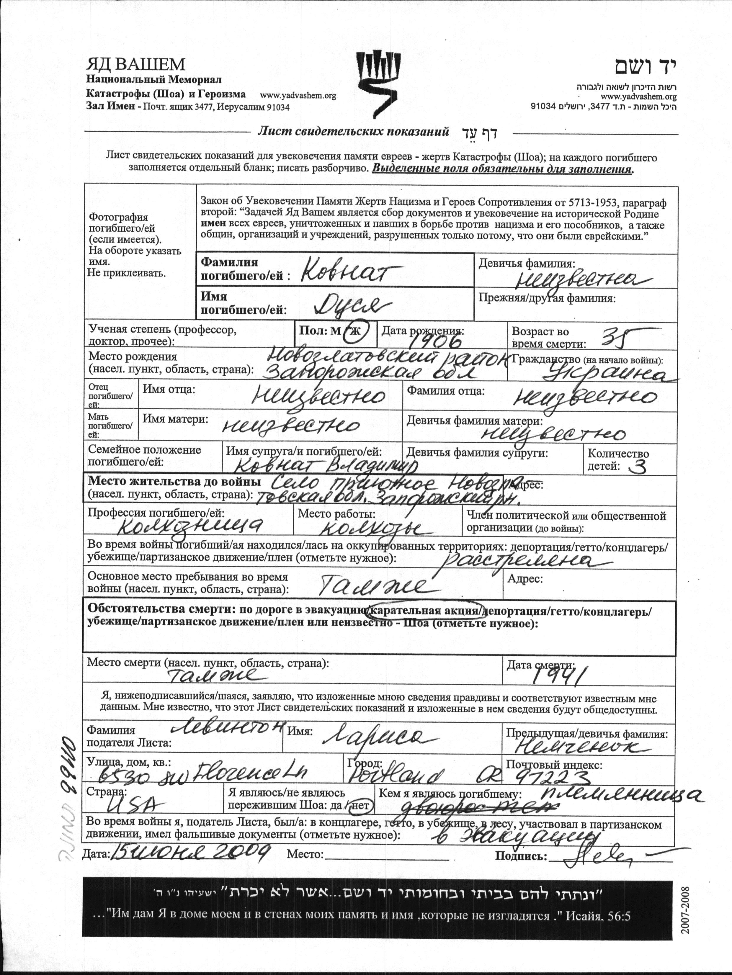 Yad Vashem - Pages of Testimony Names Memorial Collection