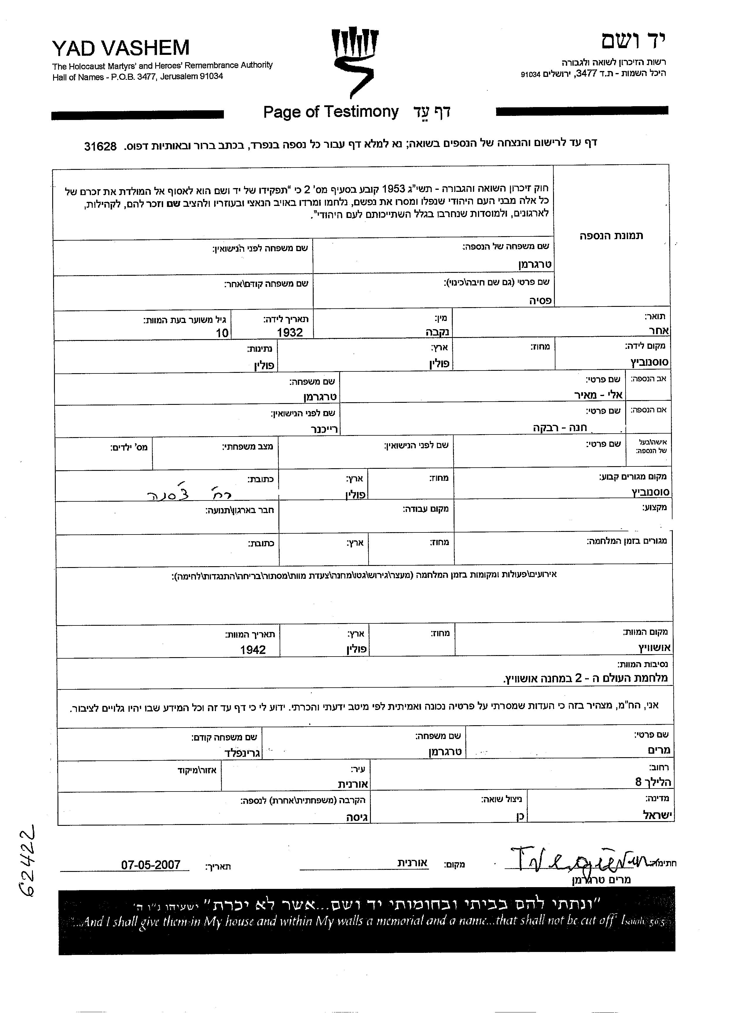 Yad Vashem - Pages of Testimony Names Memorial Collection