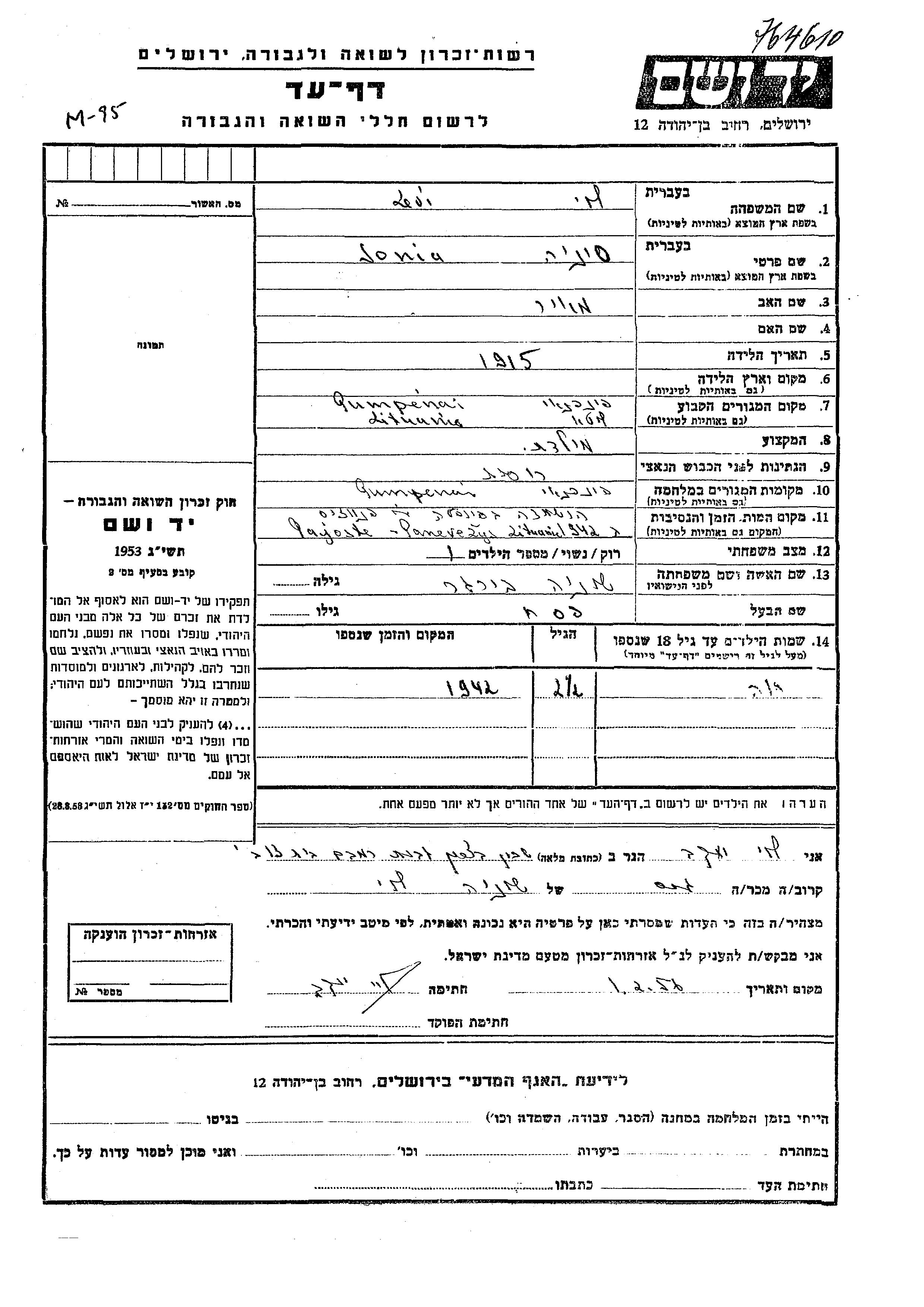 Yad Vashem - Pages of Testimony Names Memorial Collection