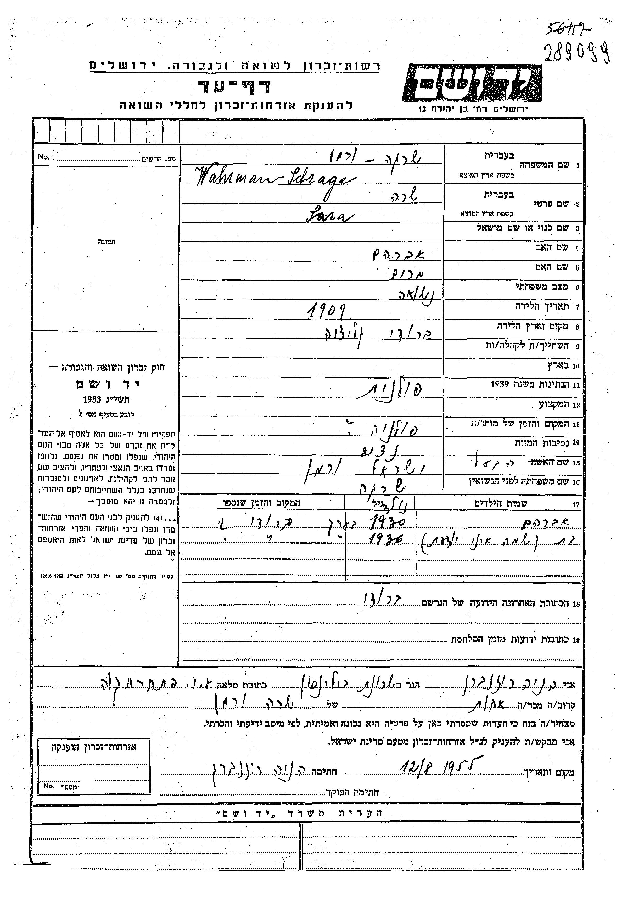 Yad Vashem - Pages of Testimony Names Memorial Collection