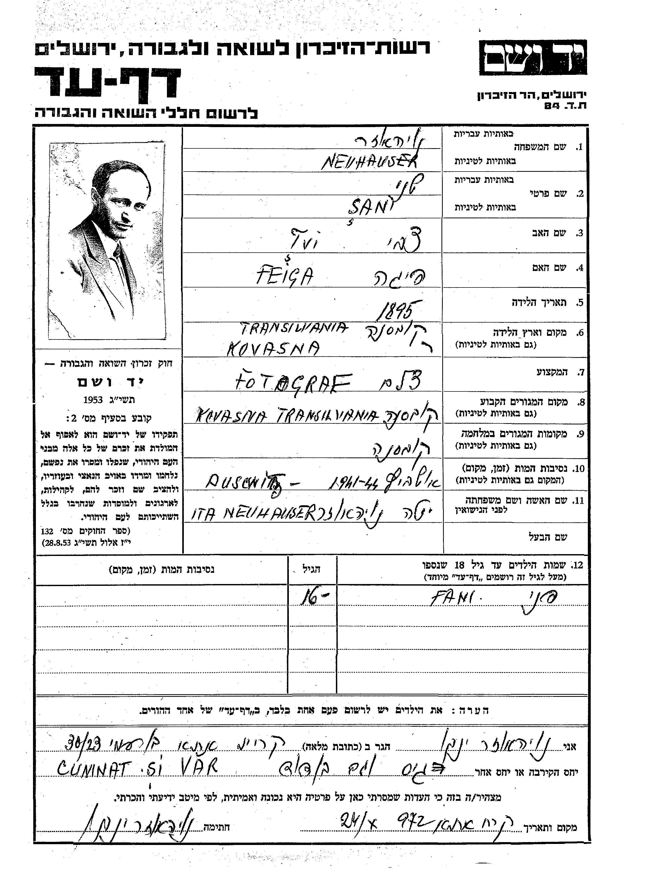 Fani Neuhauzer. Prior to WWII she lived in Covasna, Romania.