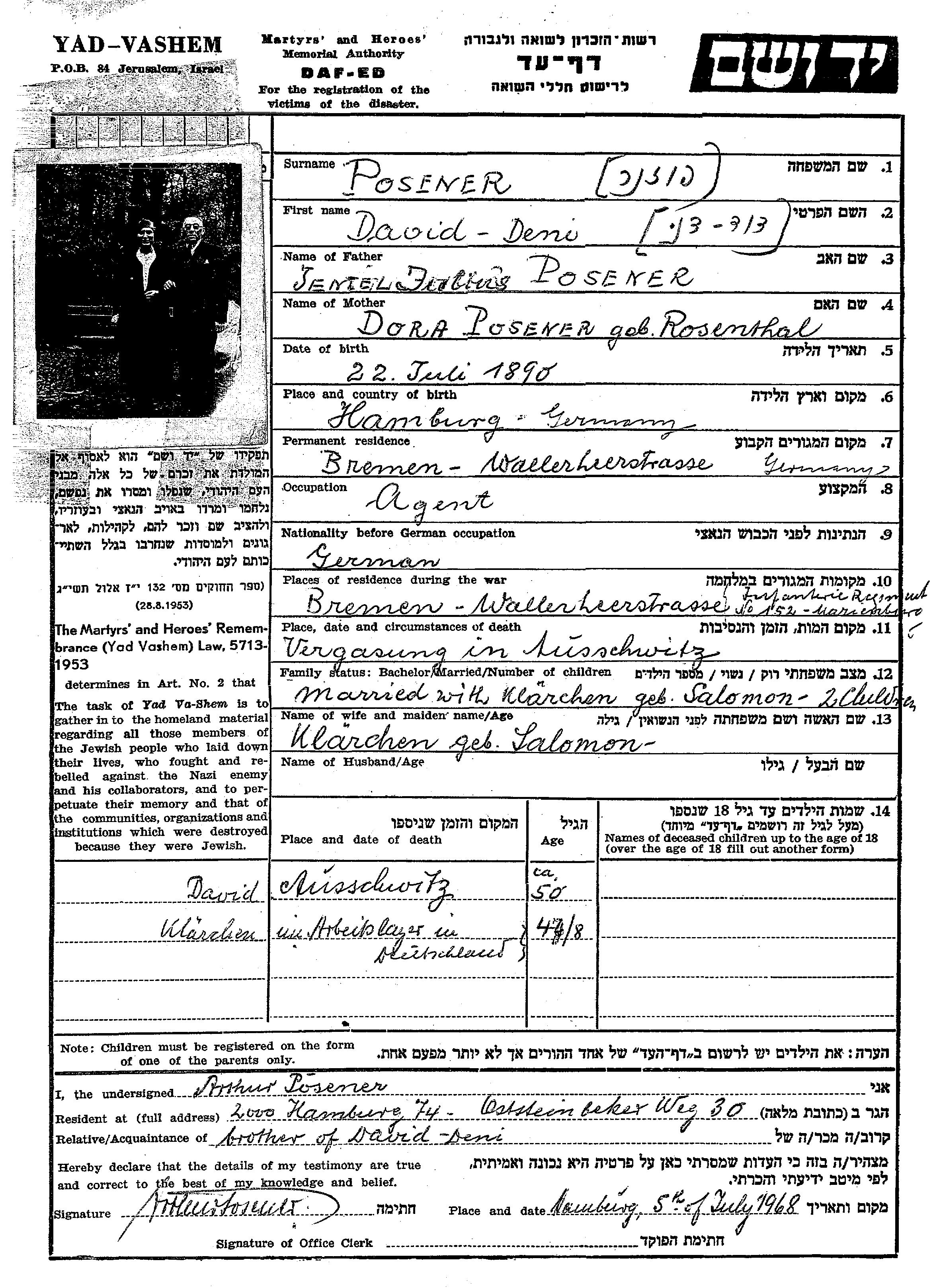 David Posener. Prior to WWII he lived in Bremen, Germany.
