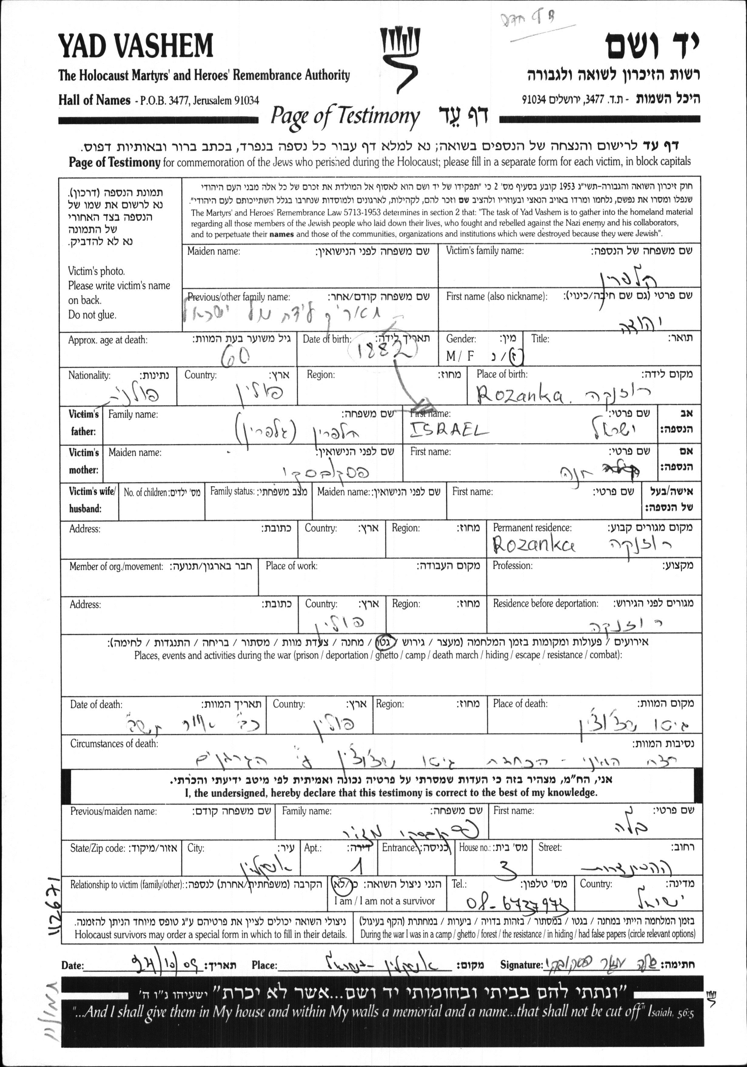 Halperin Yehuda Rozanka, Poland Page of Testimony