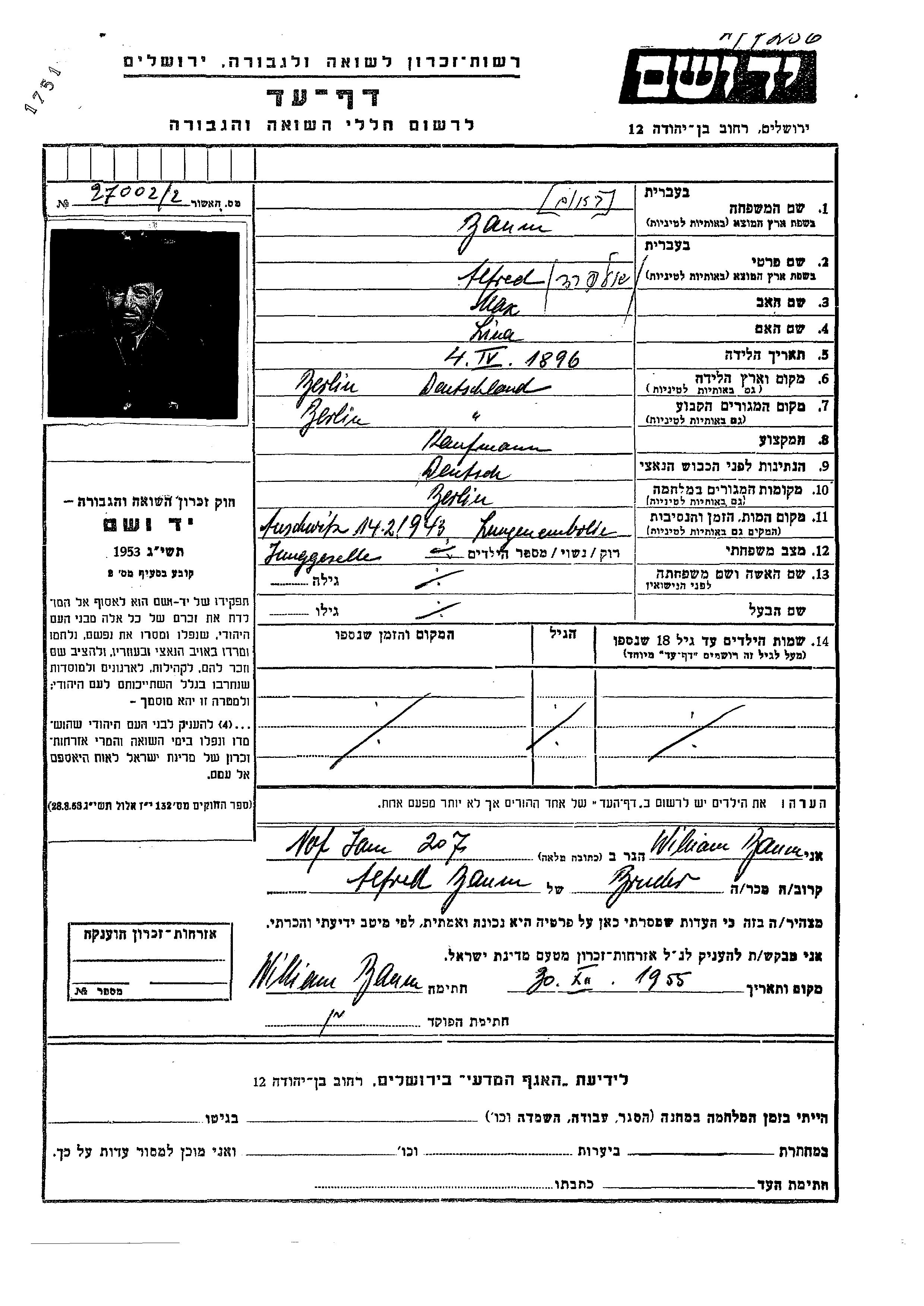 Yad Vashem - Pages of Testimony Names Memorial Collection