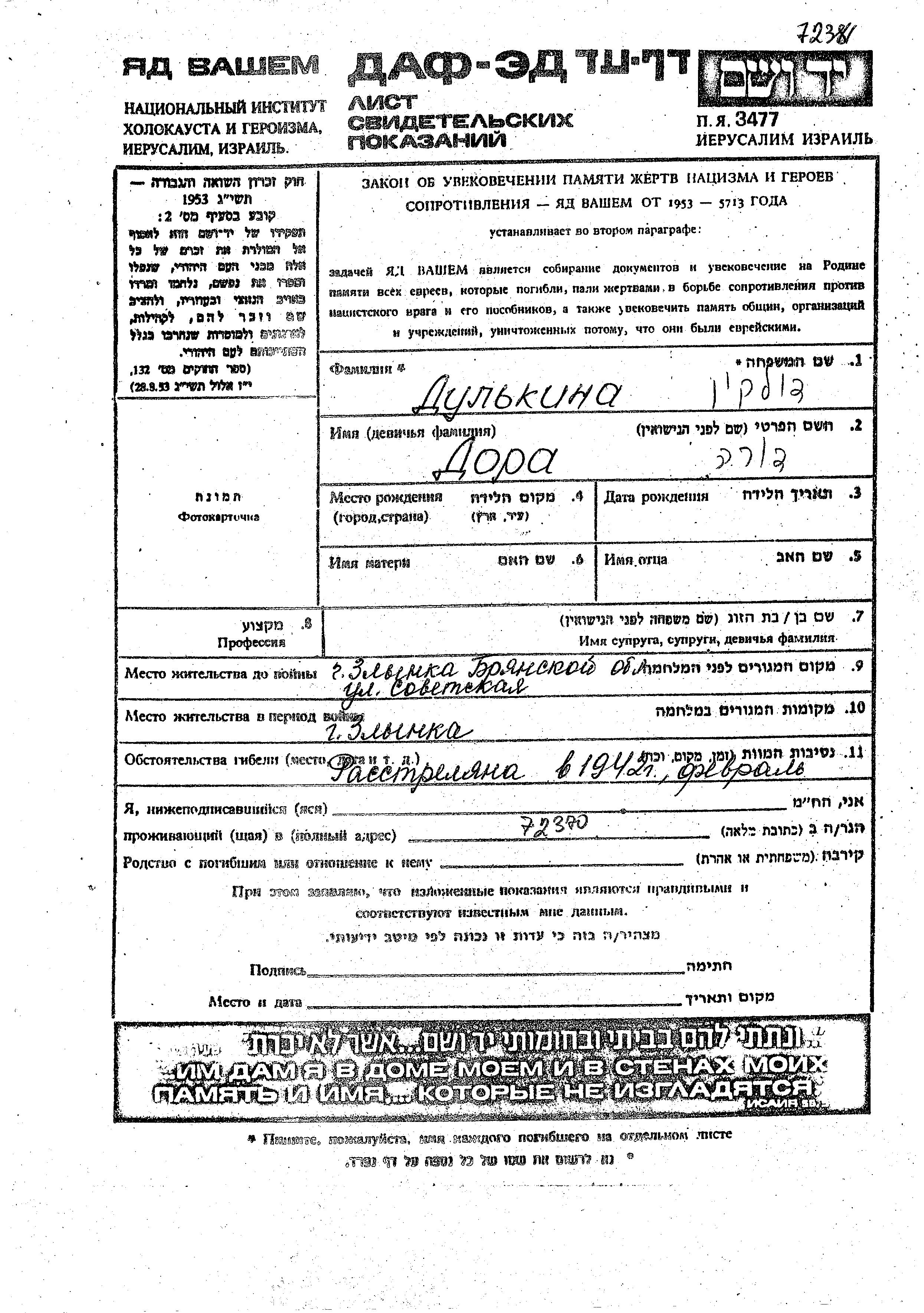 Search by last name of the submitter of the Page of Testimony, including diminutives or nicknames