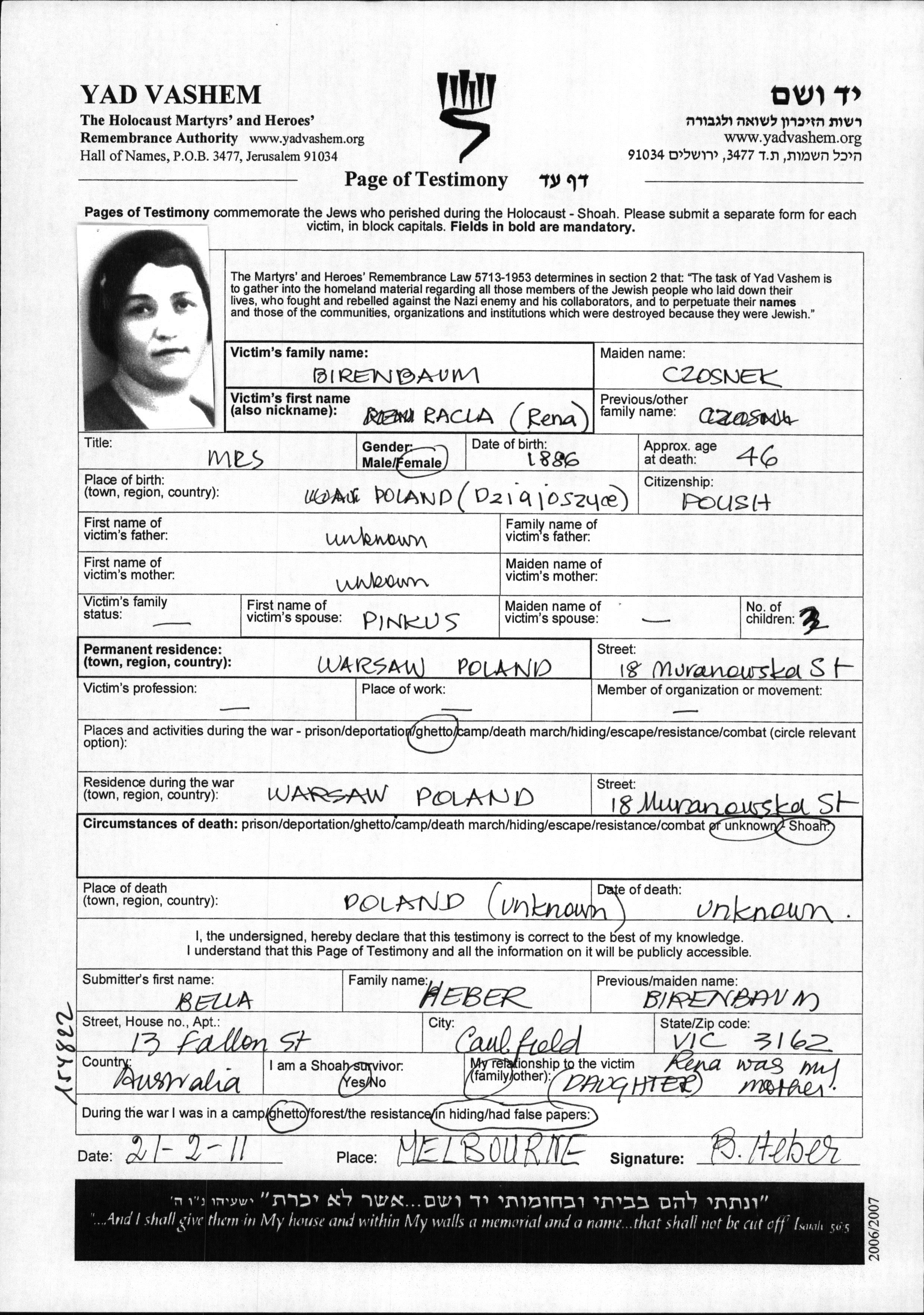 Search by last name of the submitter of the Page of Testimony, including diminutives or nicknames