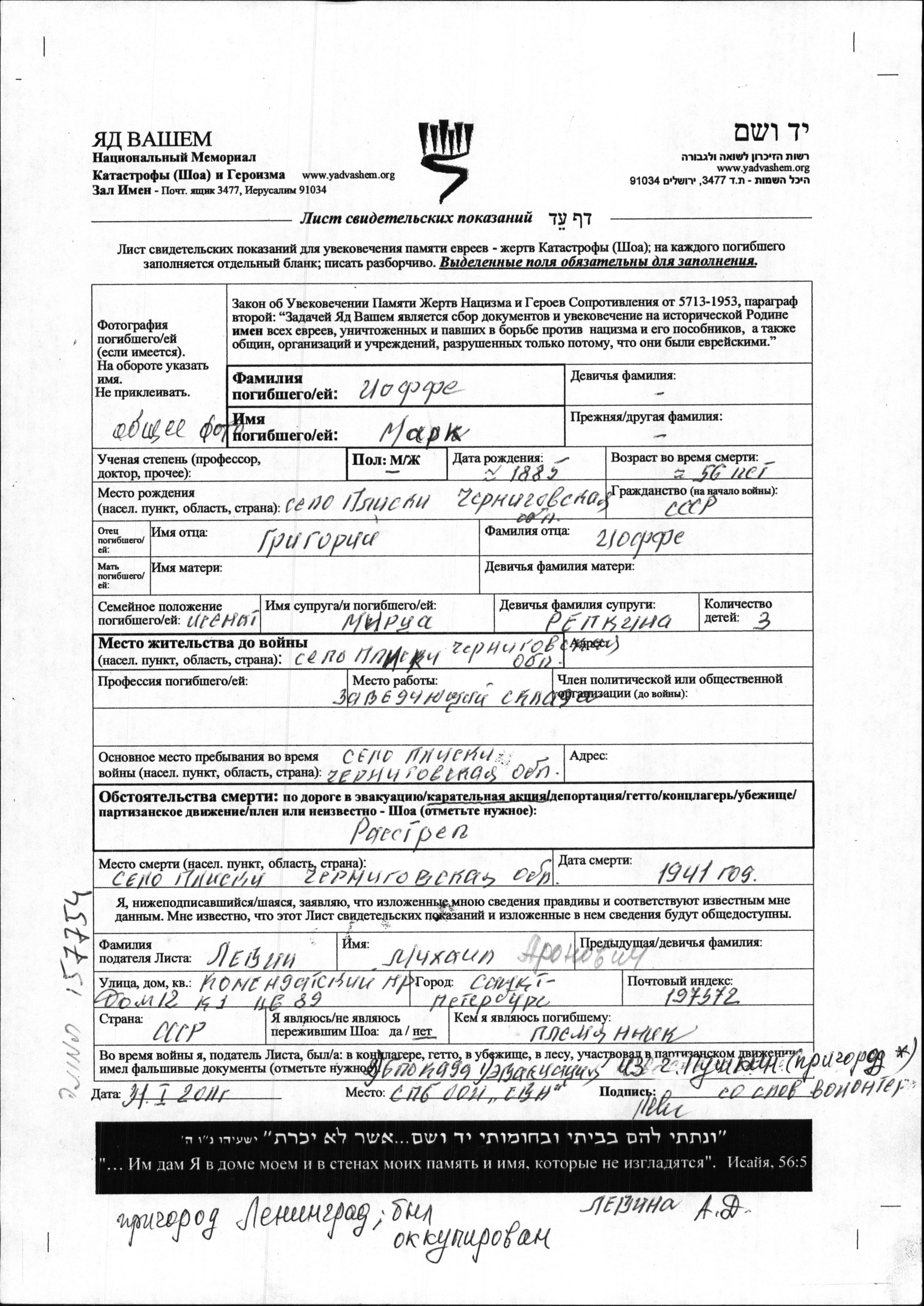 Yad Vashem - Pages of Testimony Names Memorial Collection