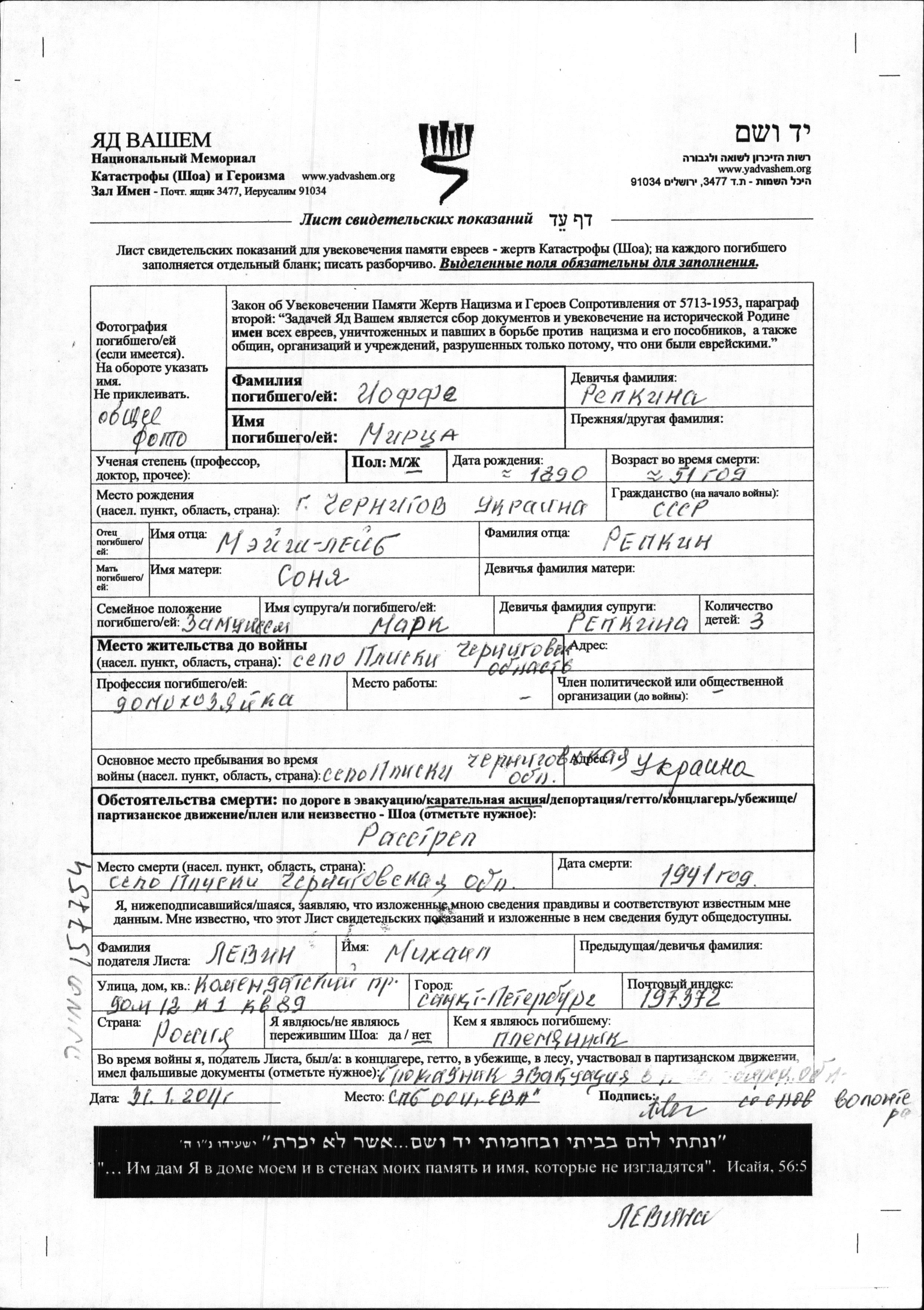 Yad Vashem - Pages of Testimony Names Memorial Collection