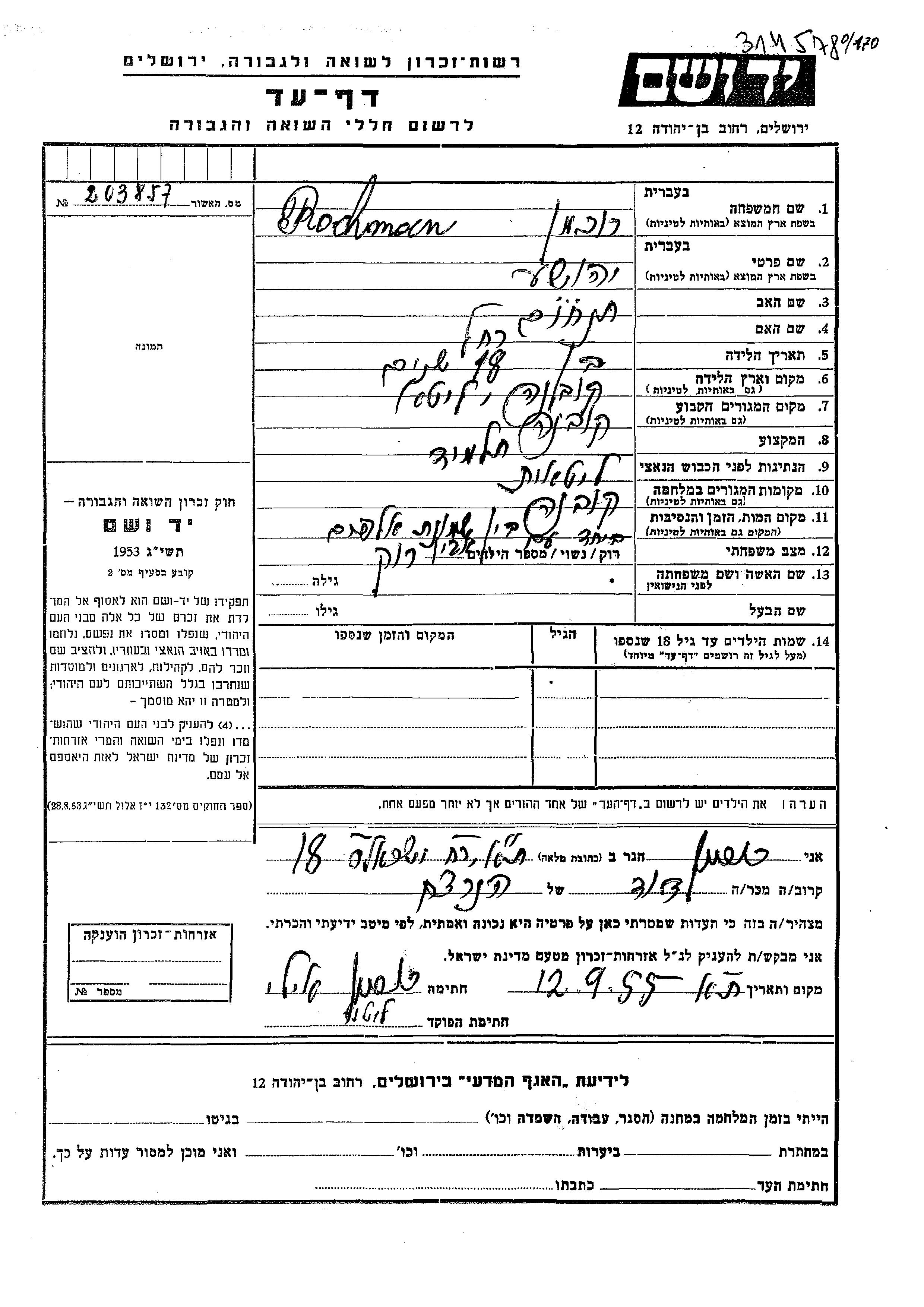 Yad Vashem - Pages of Testimony Names Memorial Collection