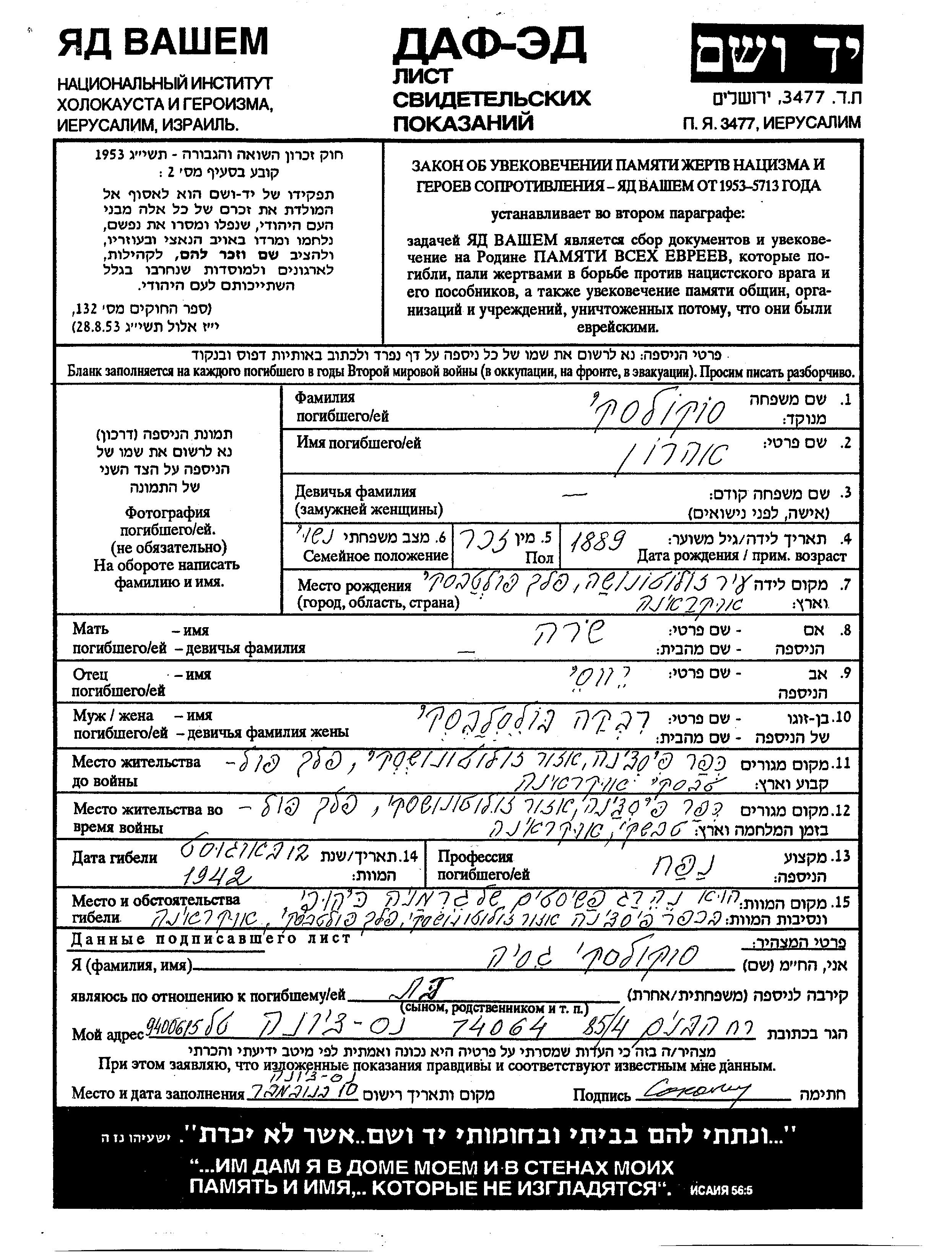 Yad Vashem - Pages of Testimony Names Memorial Collection