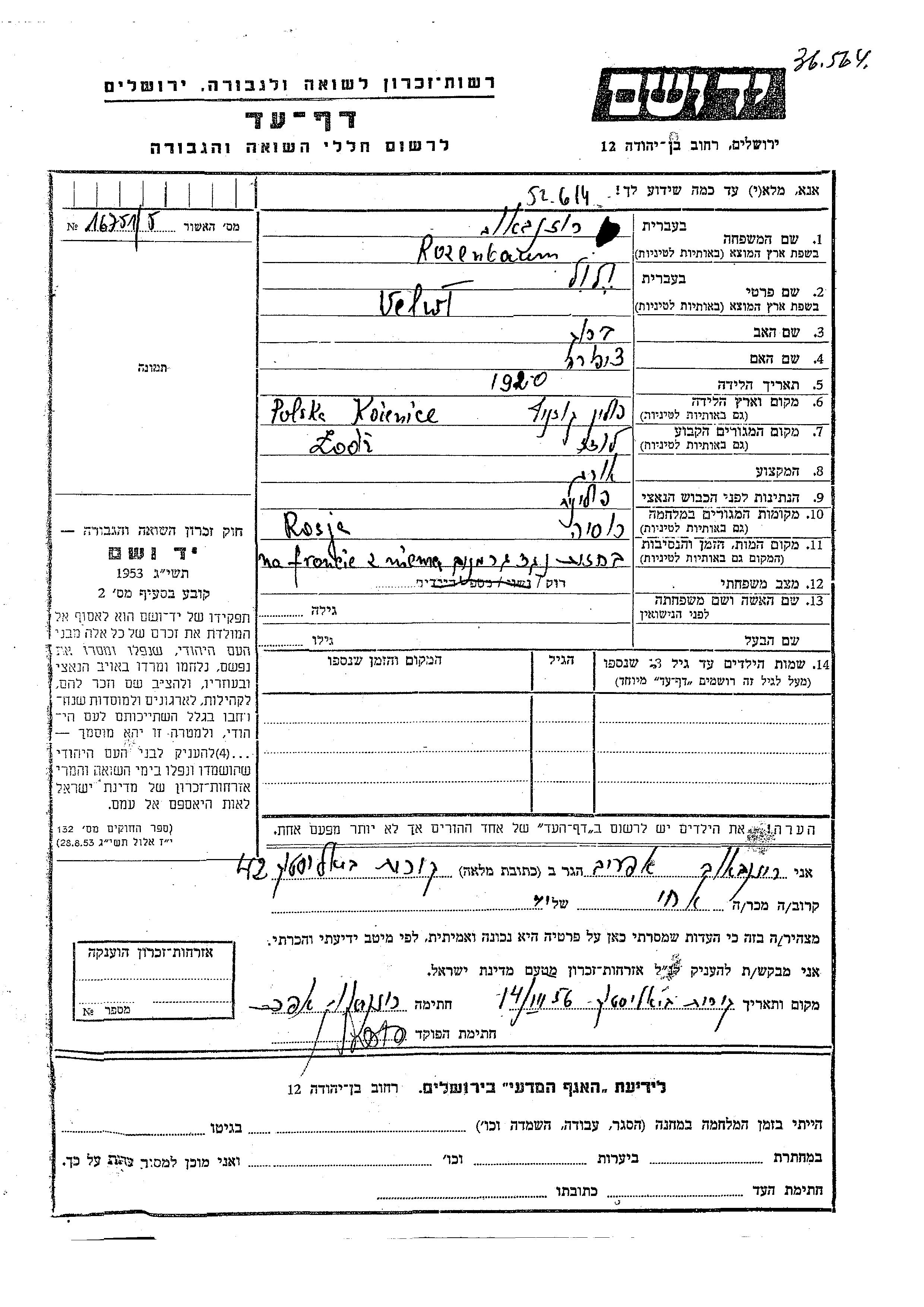 Rozenbaum Velwl 1920 Lodz, Poland Page of Testimony