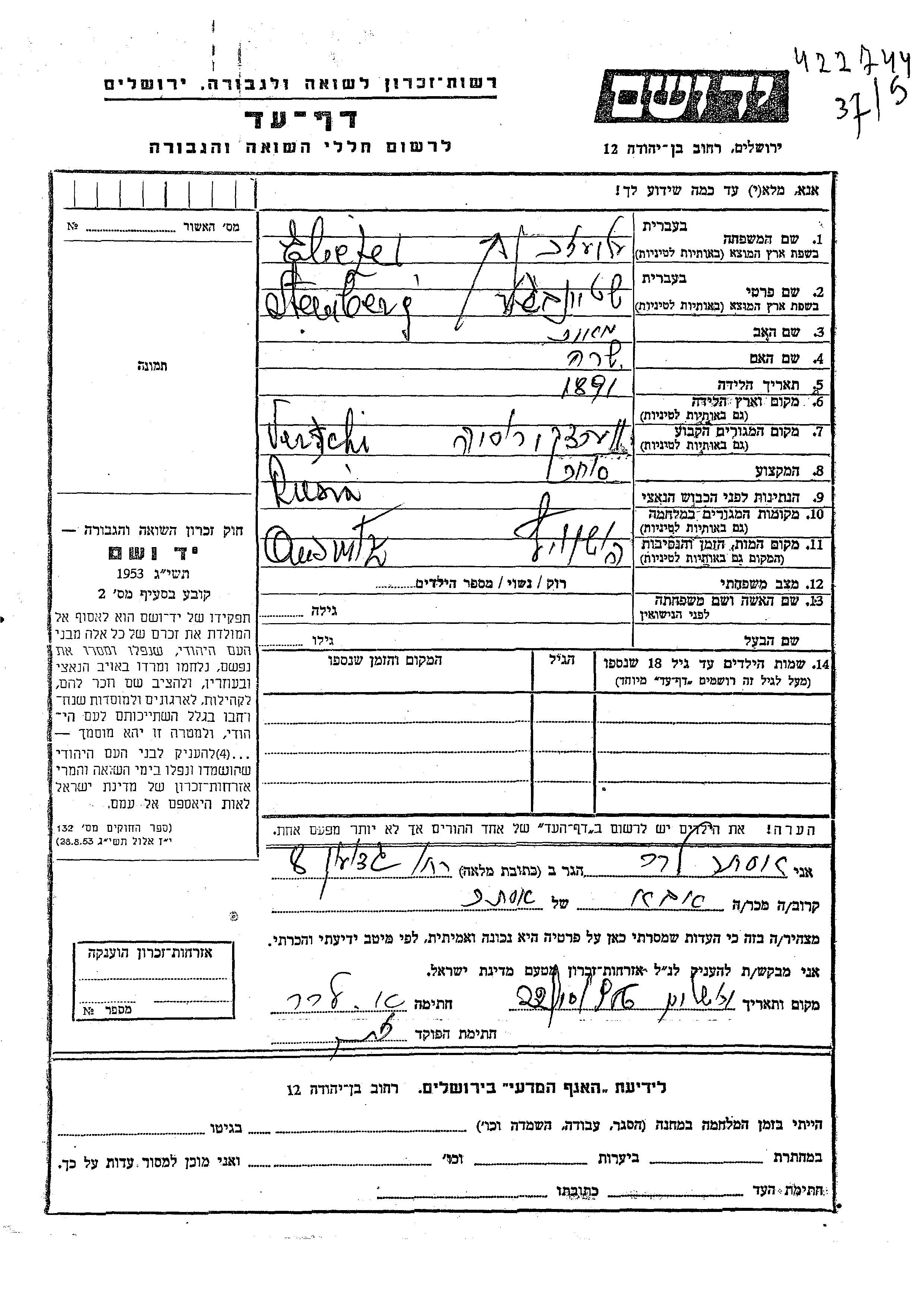 Yad Vashem - Pages of Testimony Names Memorial Collection