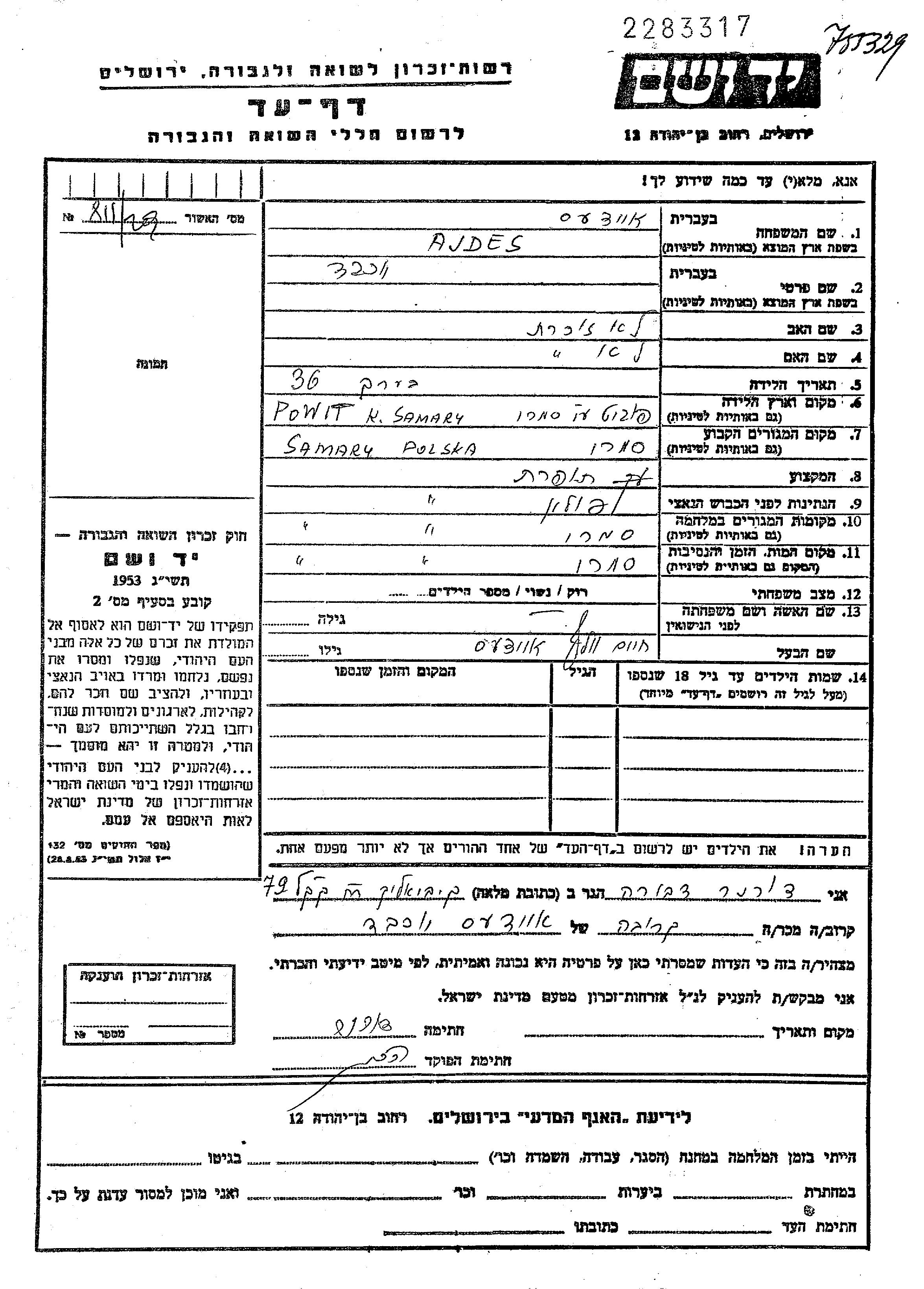 Ajdes Yokheved Samary, Poland Page of Testimony