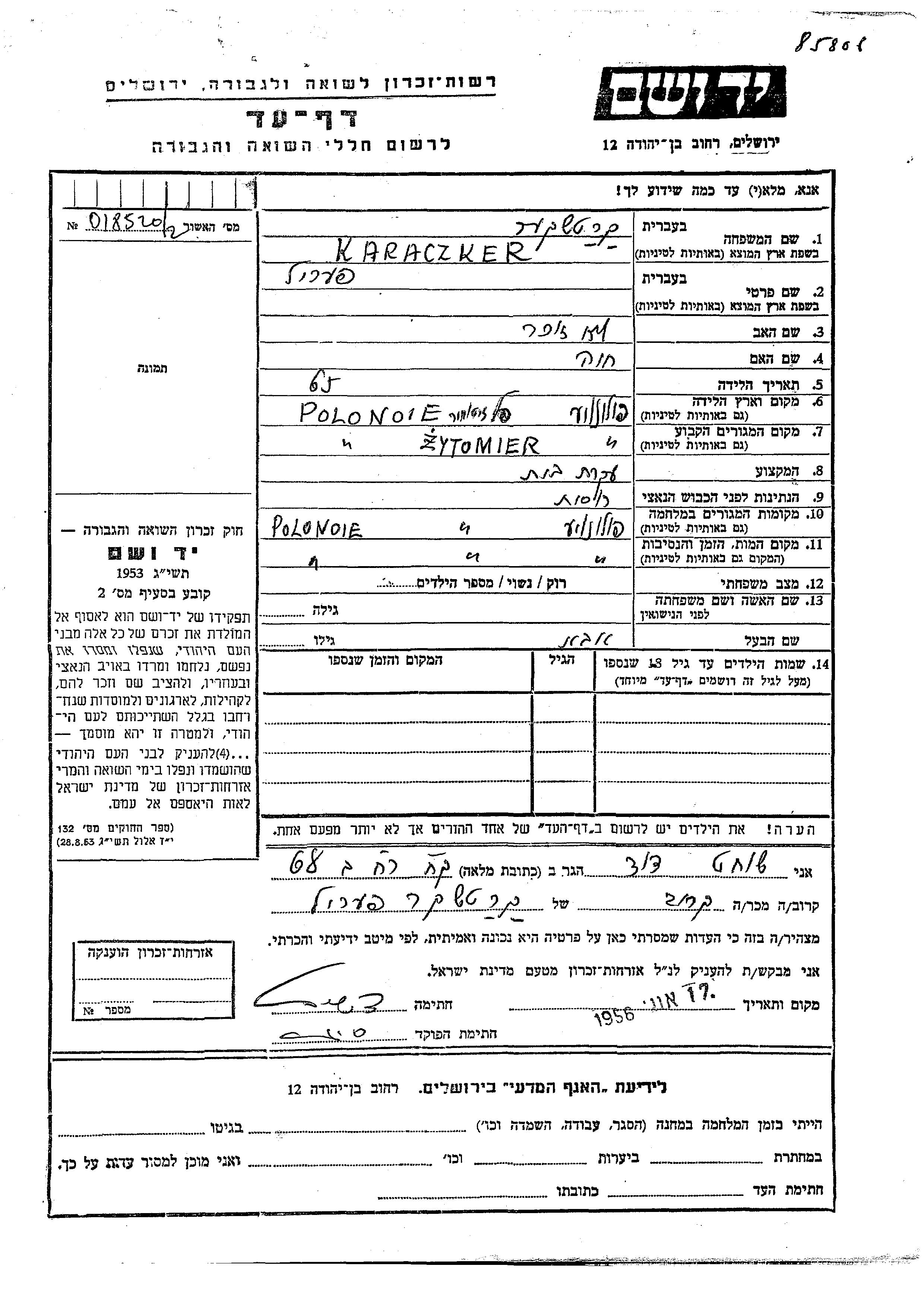 Karaczker Peril Zhitomir, Ukraine (USSR) Page of Testimony