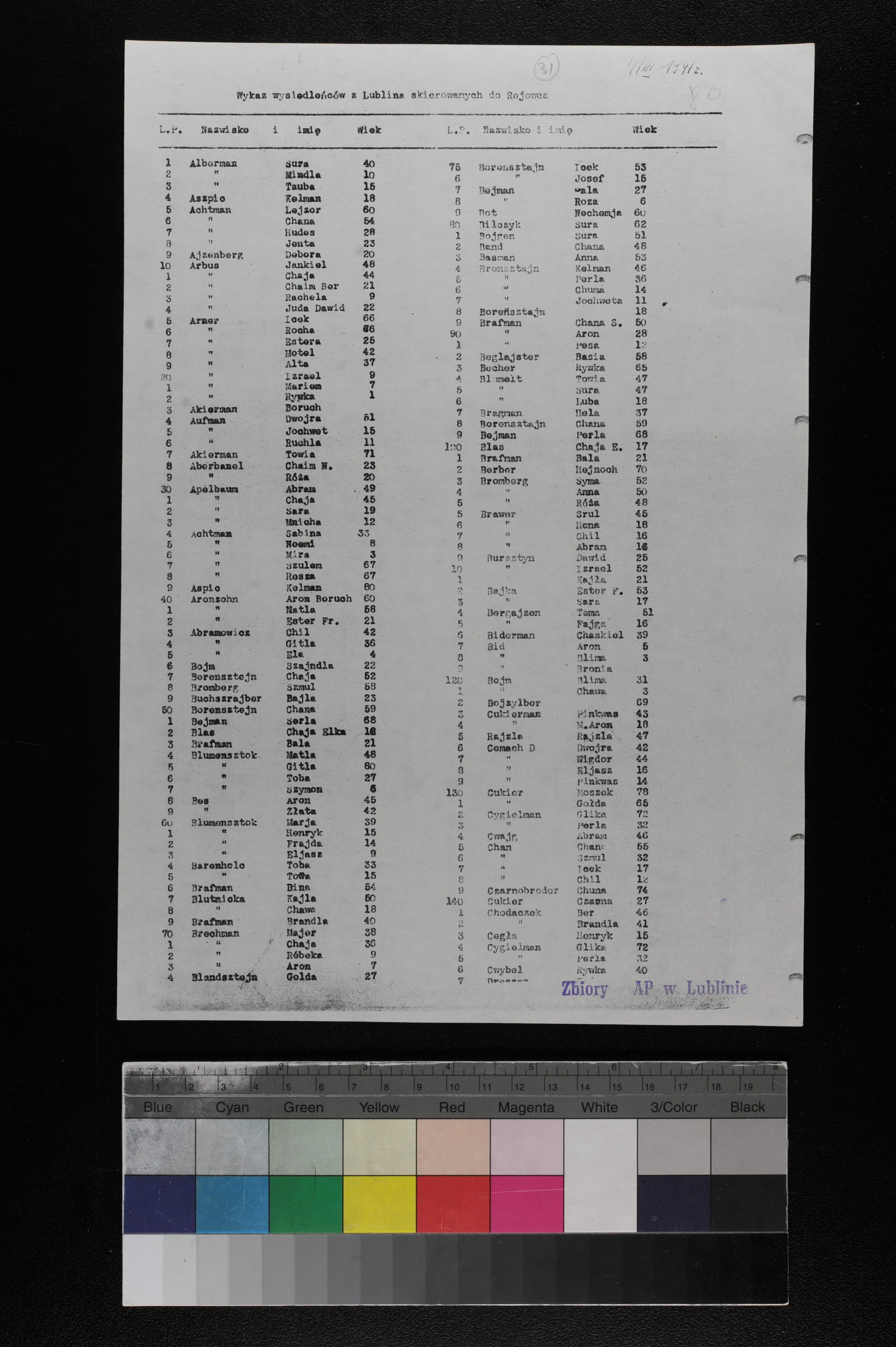 Lists of Jews deported from Lublin to the Belzyce, Chodel, Lubartow, Rejowiec and Siedliszcze camps, March 1941