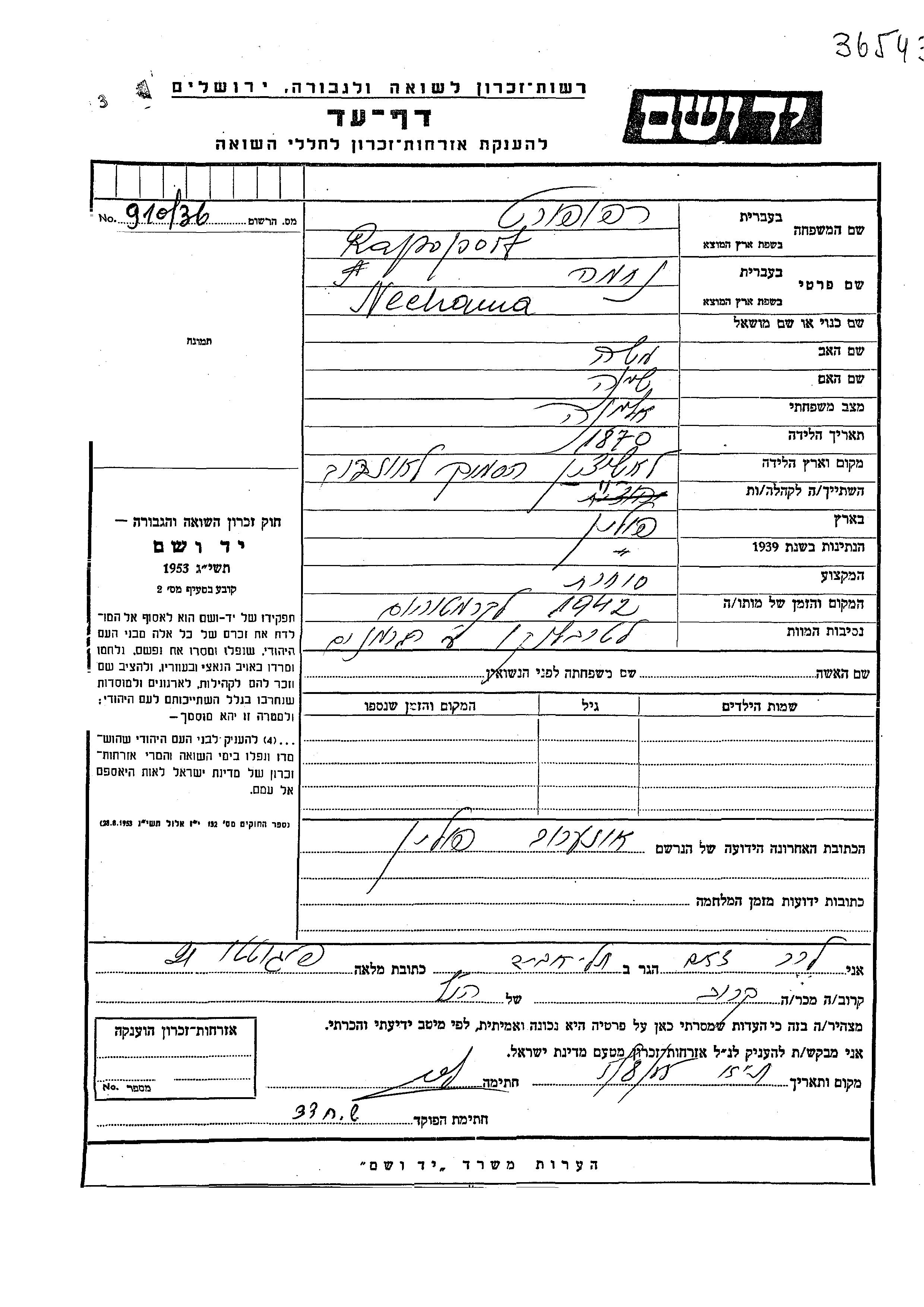 Yad Vashem - Pages of Testimony Names Memorial Collection