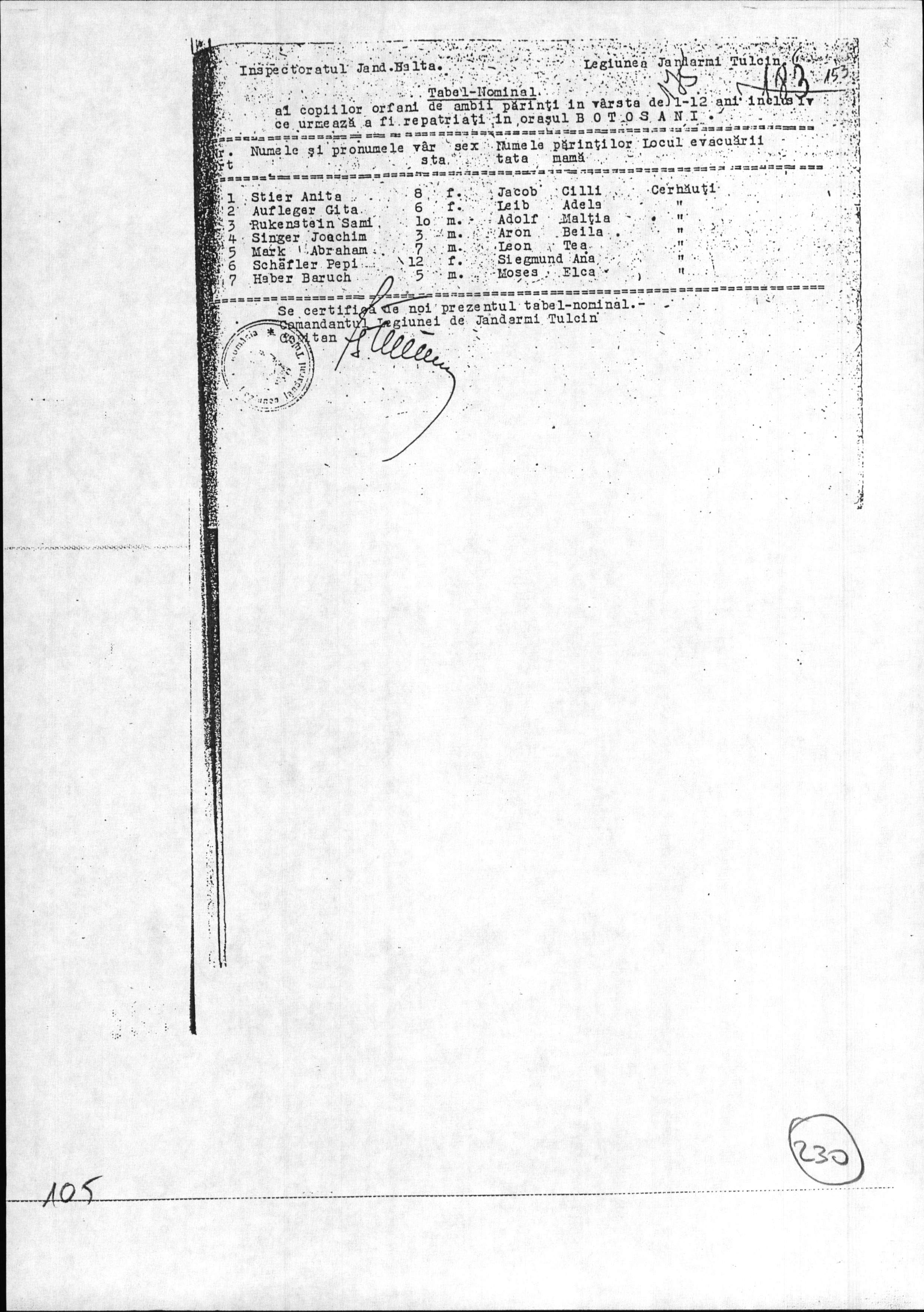 Lists of Jewish orphans staying in various places in Transnistria who are supposed to return to Botosani, prepared, 01-02/1944