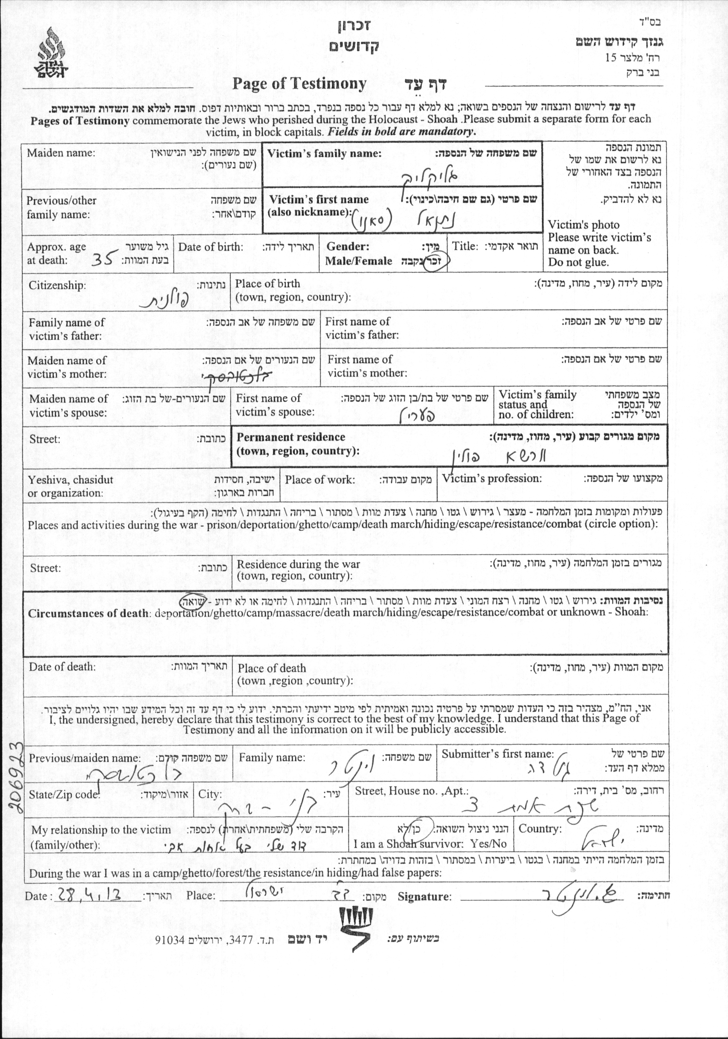 Yad Vashem - Pages of Testimony Names Memorial Collection